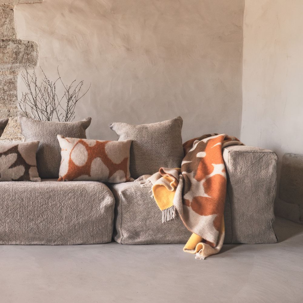 Coussin en laine à motifs fleuris "Mimo" - Camel