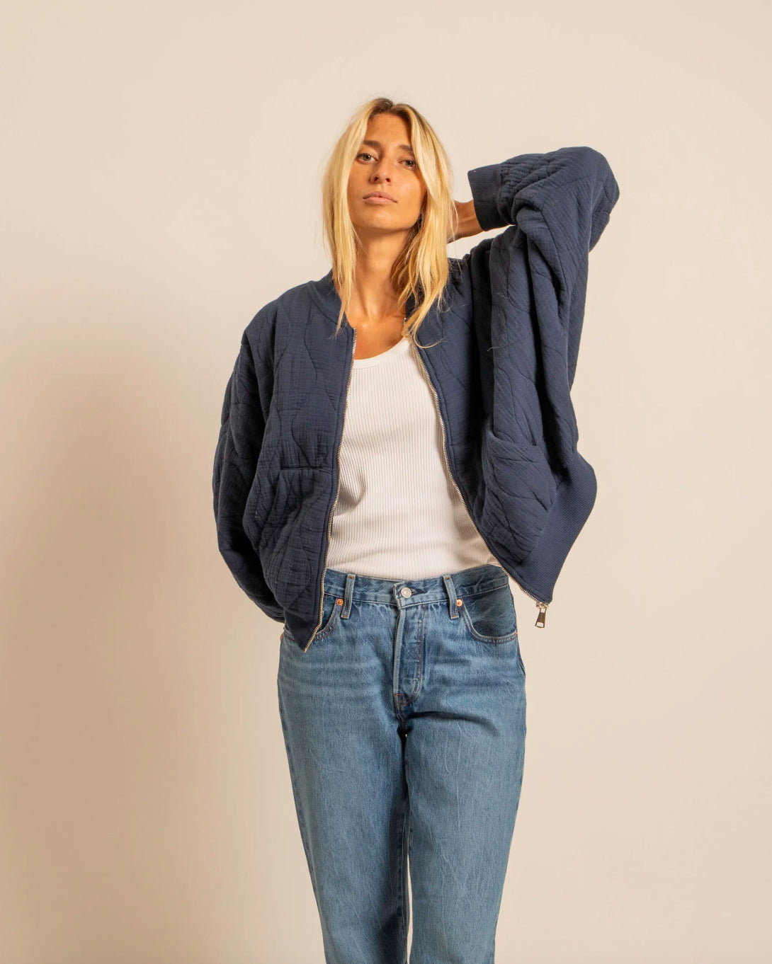 On adore la matière, facile à vivre, et la coupe déstructurée facile à porter, en demi-saison ou en été, associé à un jean, short ou sur une robe.
