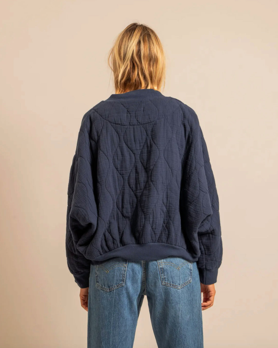 Finition encolure, base et poignets en fins bords-côtes stretch, coordonnés.