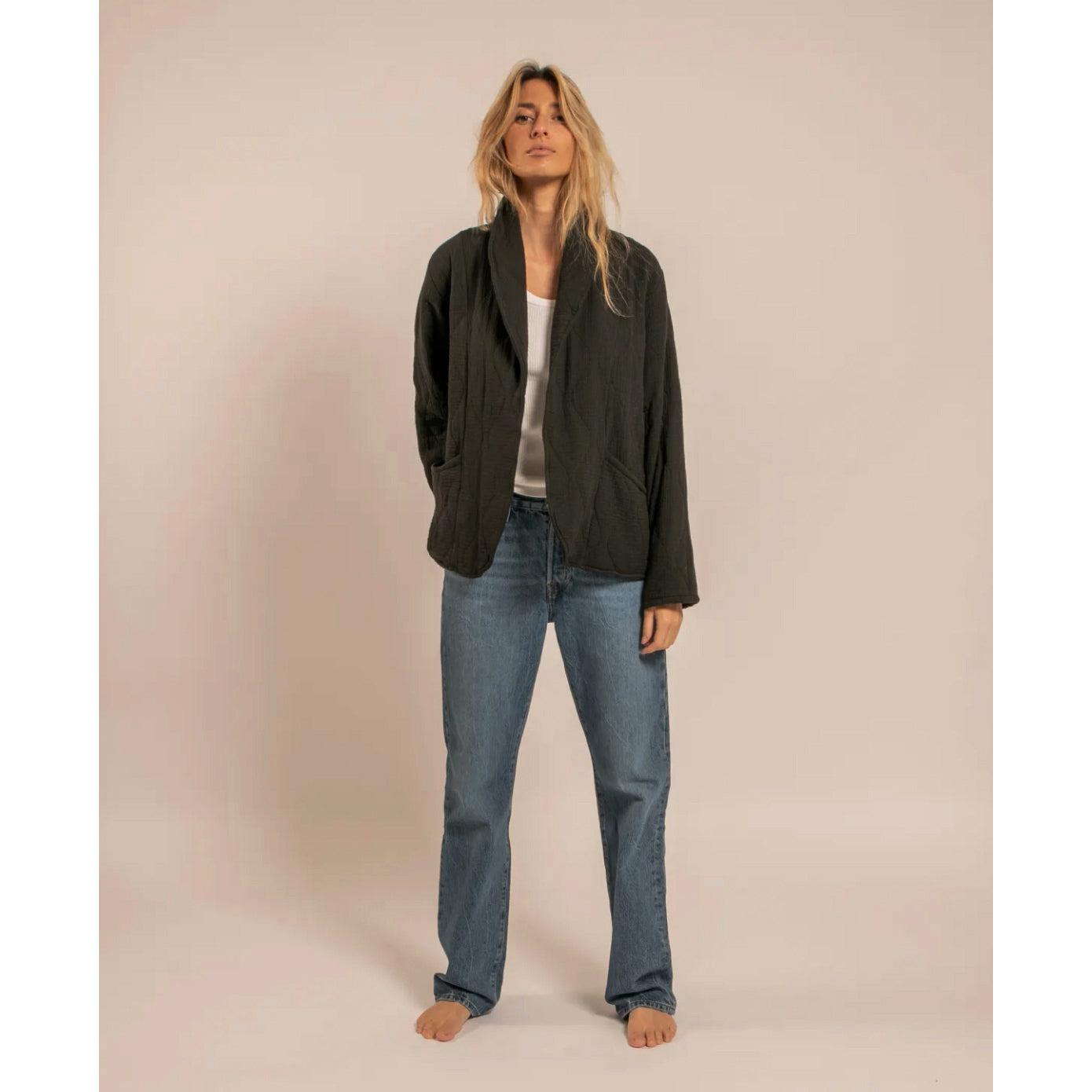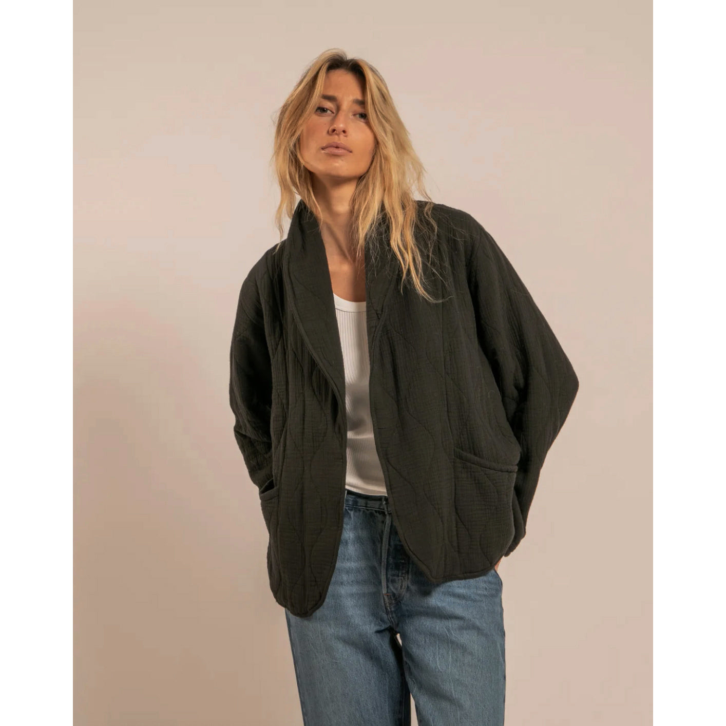 Veste ample, manches droites.