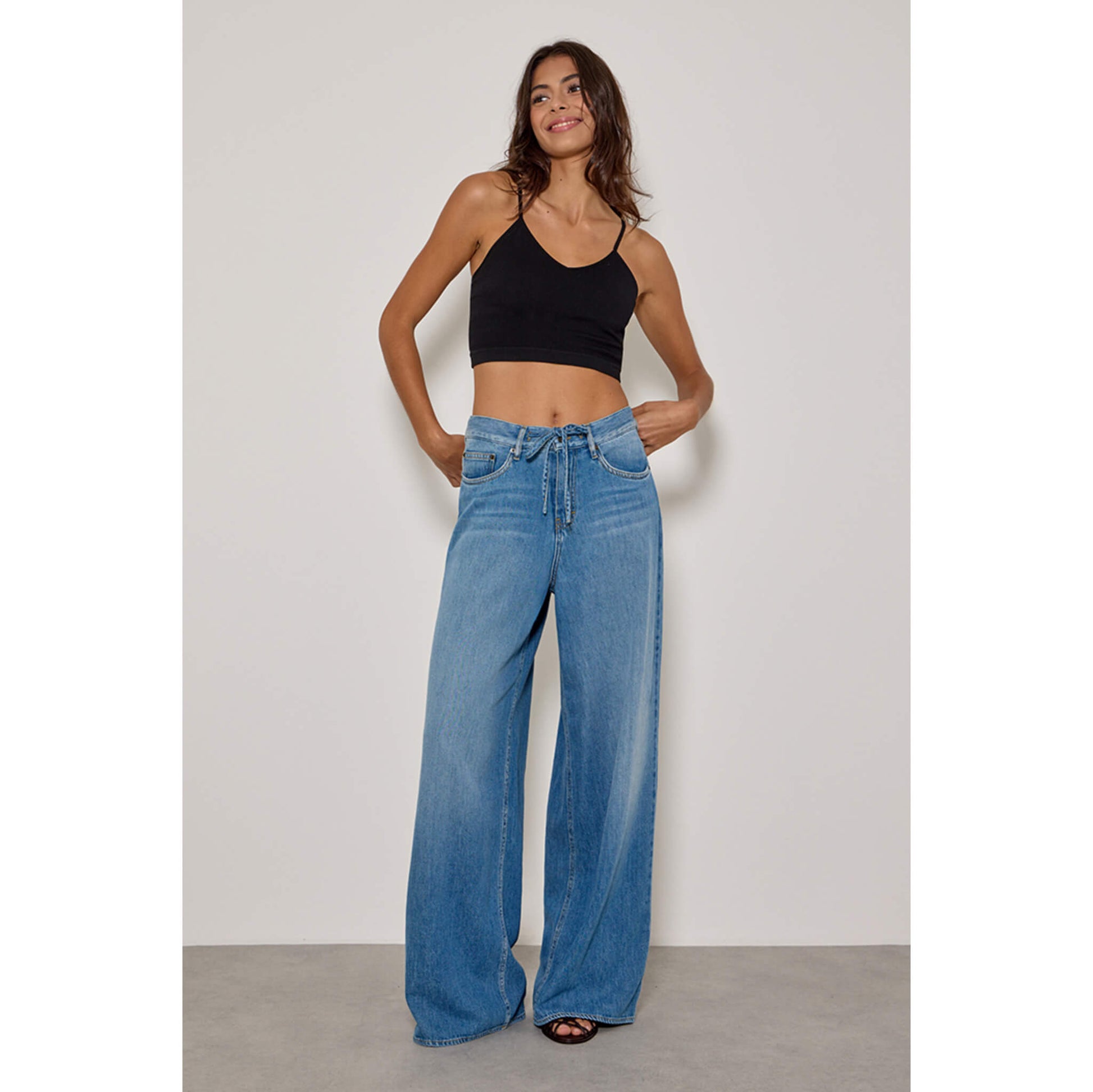 Ceinture avec passants, cordon de serrage dans la ceinture.