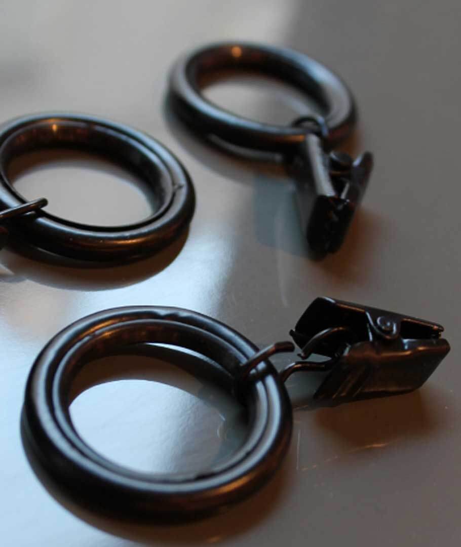 Anneaux de rideaux en métal (anneaux + pince) couleur anthracite.