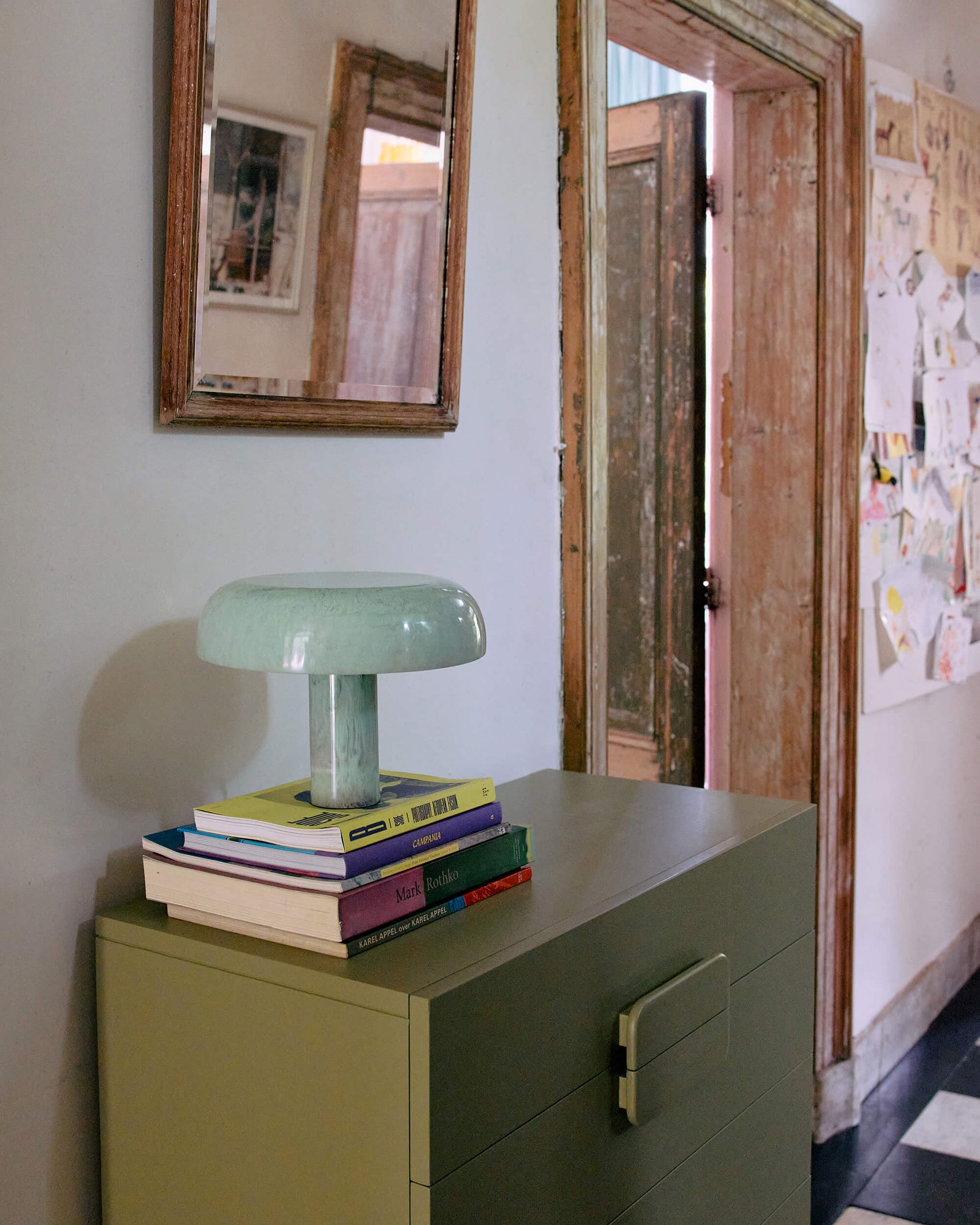 Cette lampe de table en forme de champignon apporte une touche ludique à votre intérieur grâce à sa finition vert menthe brillante et ses formes douces et arrondies. Diffusant une lumière tamisée sous son abat-jour, elle allie charme sculptural et fonctionnalité : idéale pour les tables de chevet, les étagères ouvertes ou tout autre endroit qui gagnerait à être agrémenté d'une note d'originalité.