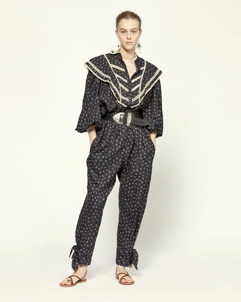 Petit col droit finition dentelle volantée.