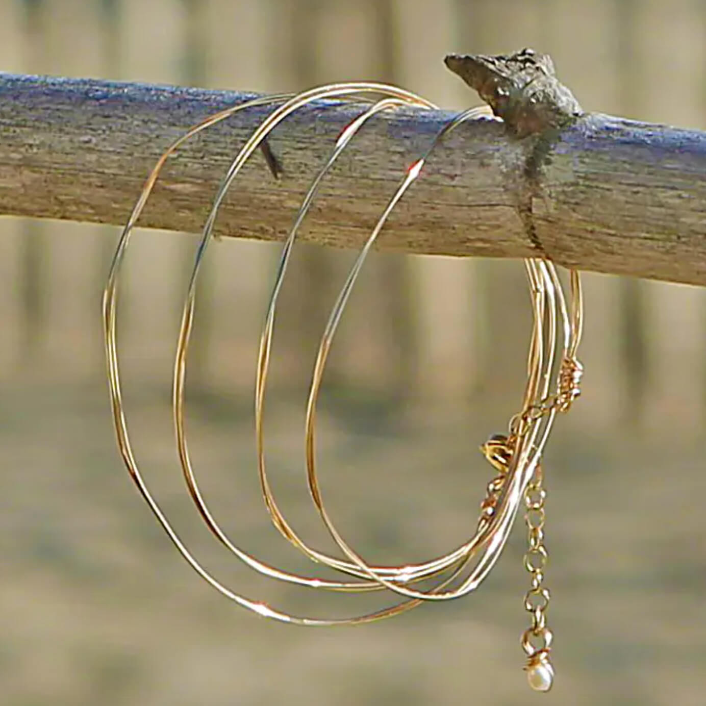 Bracelet-fil souple plaqué or multiple , fermeture à