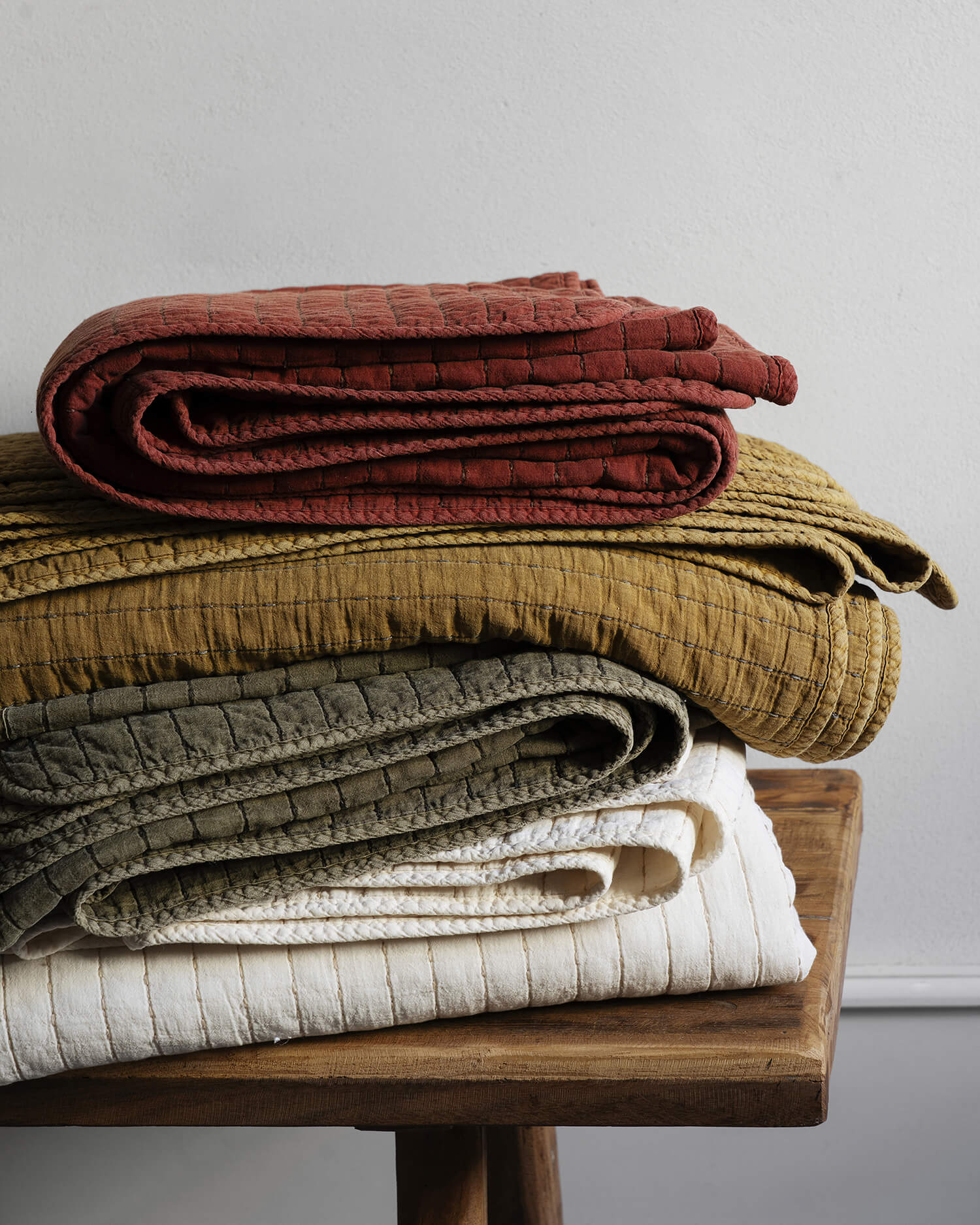 Ce couvre-lit en coton matelassé, présente une finition délavée pour un toucher doux et élégant, dans des tons doux ivoire et beige. À associer avec des coussins aux couleurs ou motifs de votre choix.