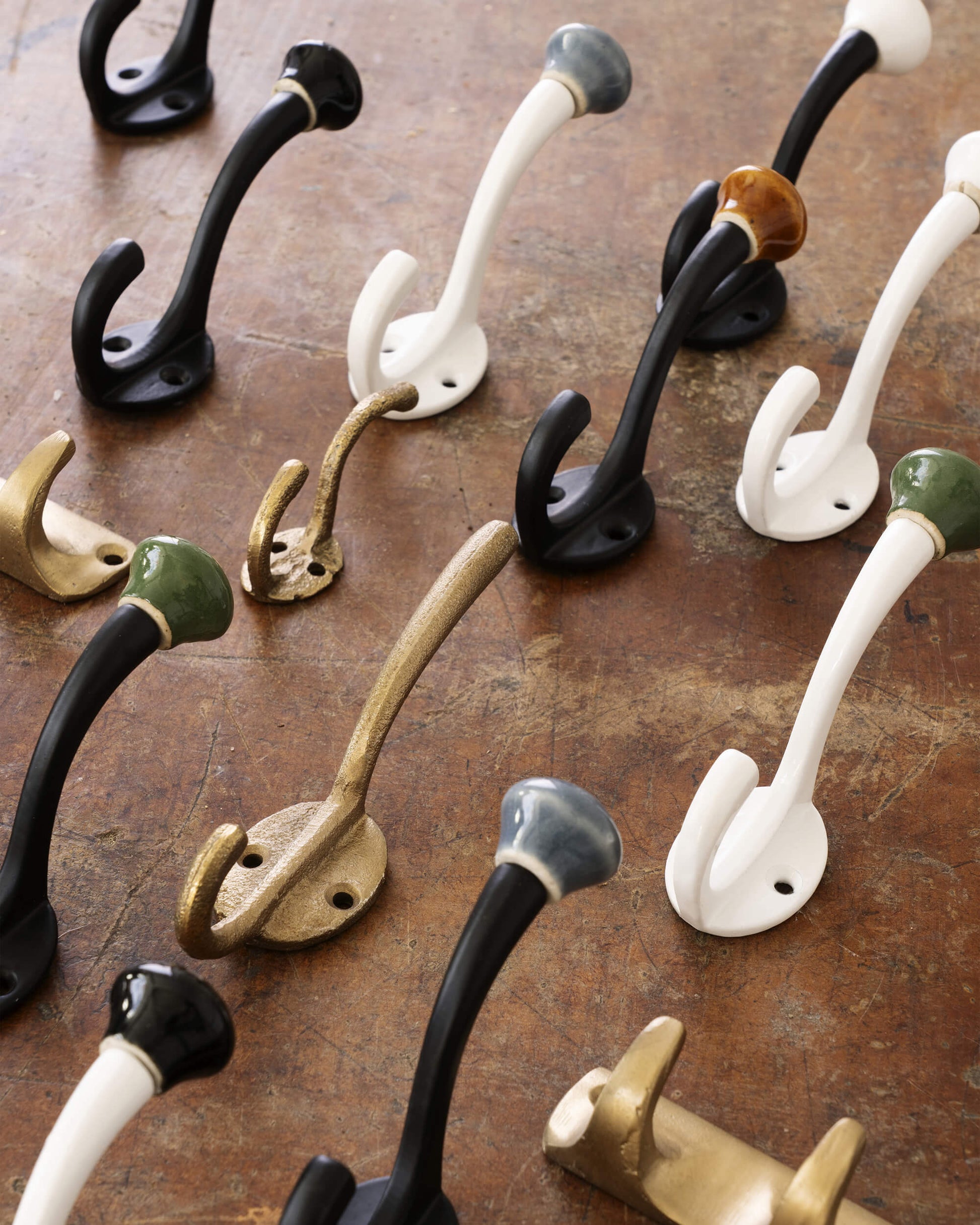 Patère en métal laqué, avec boules vissées en porcelaine.