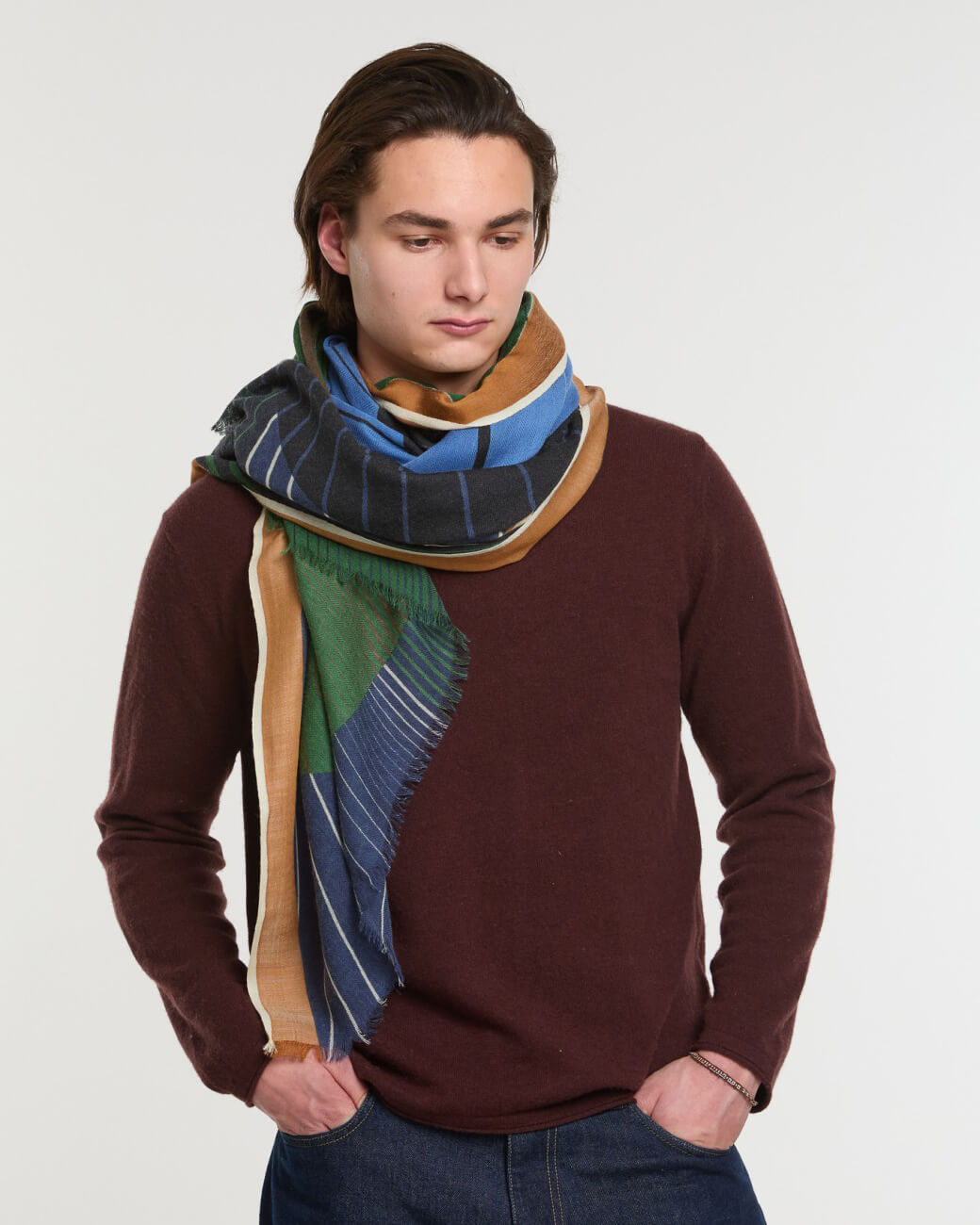 Entre jeu de jour et de nuit, de clair-obscur, ce foulard explore les contrastes avec subtilité.