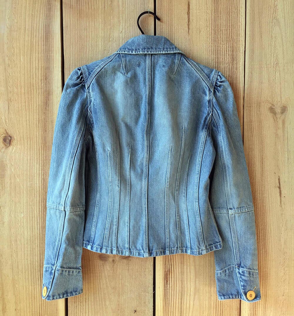 Nombreuses découpes, poches plaquées, manches longues , emmanchures "entrantes" froncées, poignets boutonnés.