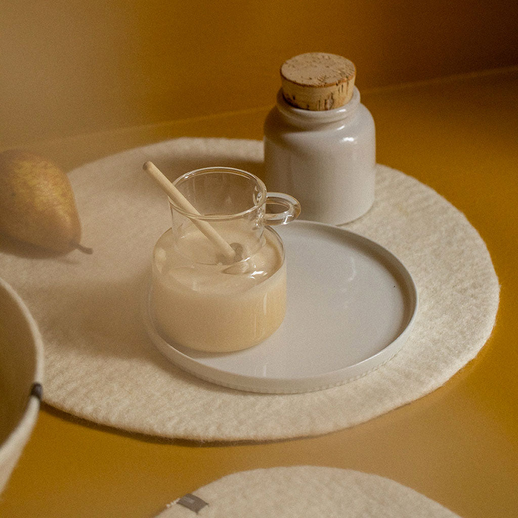 Fabriquées à Katmandou par nos artisanes, les grandes pastilles en laine feutrée sont à utiliser selon vos envies: comme sets de table, portfolio pour épingler vos photos, nos pastilles peuvent aussi servir de dessous de plat ou être disposées sur une chaise ou un banc grâce aux propriétés isolantes du feutre.