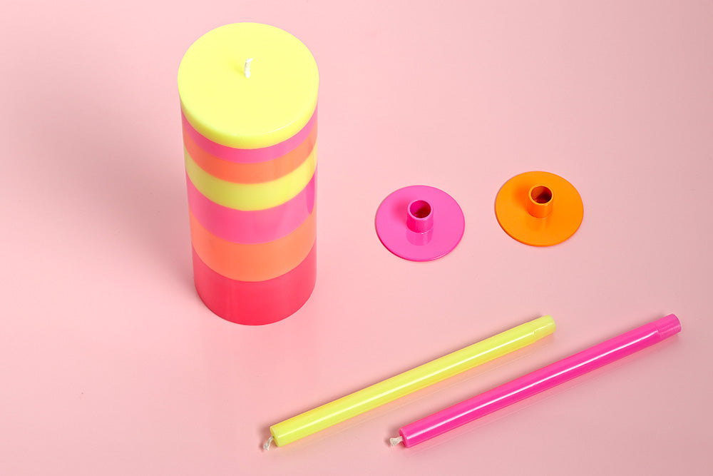 Minimalistes et aux couleurs éclatantes, nous avons mis en place dans nos bougies des codes de couleur qui se rapportent à différents aspects de la vie. Chaque bougie devient ainsi un message et un cadeau qui transmet des félicitations et des vœux. Chez nous, chaque thème a sa bougie et chaque bougie est un nouveau thème. Les bougies sont fabriquées à la main à partir de cire végétale de couleur unie.