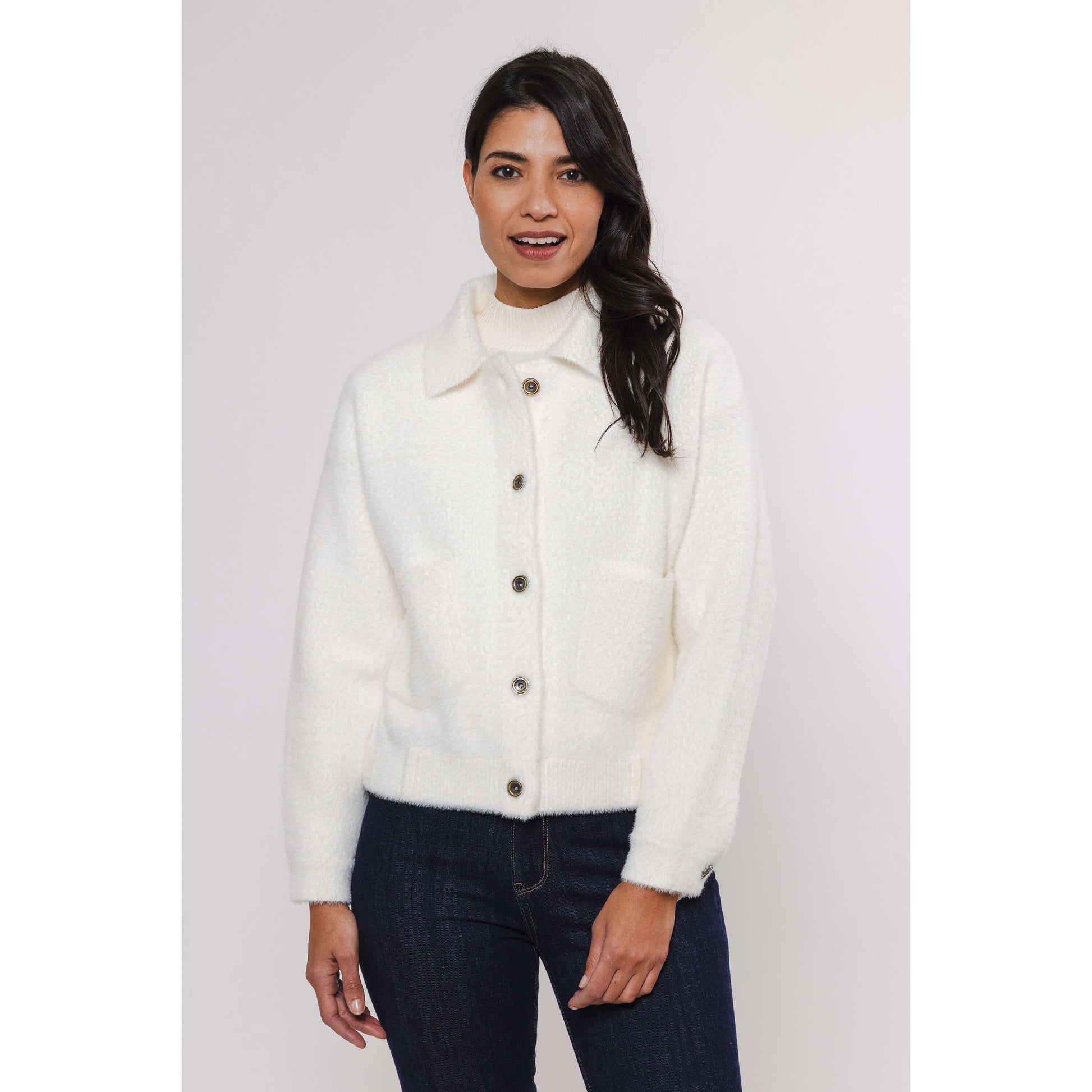 Laissez-vous séduire par la douceur luxueuse de la veste Bubbly. Confectionnée dans notre matière signature, cette veste courte est un indispensable de votre garde-robe.