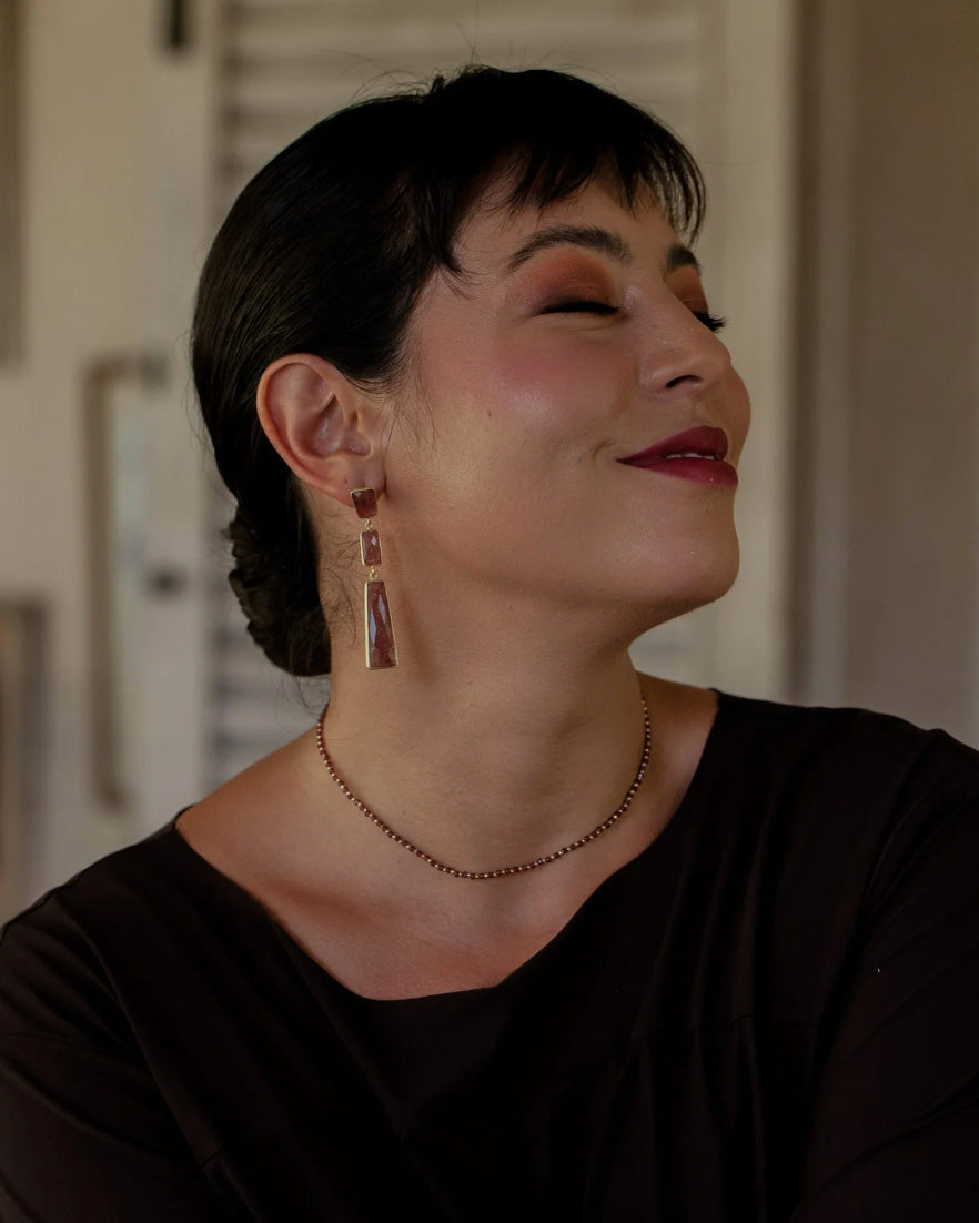 Chaque pièce est ornée de pierres naturelles, rendant chaque bijou unique par la variation subtile des formes et des couleurs.