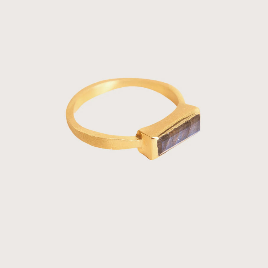 sertie sur monture en laiton recyclé, doré à l’or fin 24 carats, finition mate.