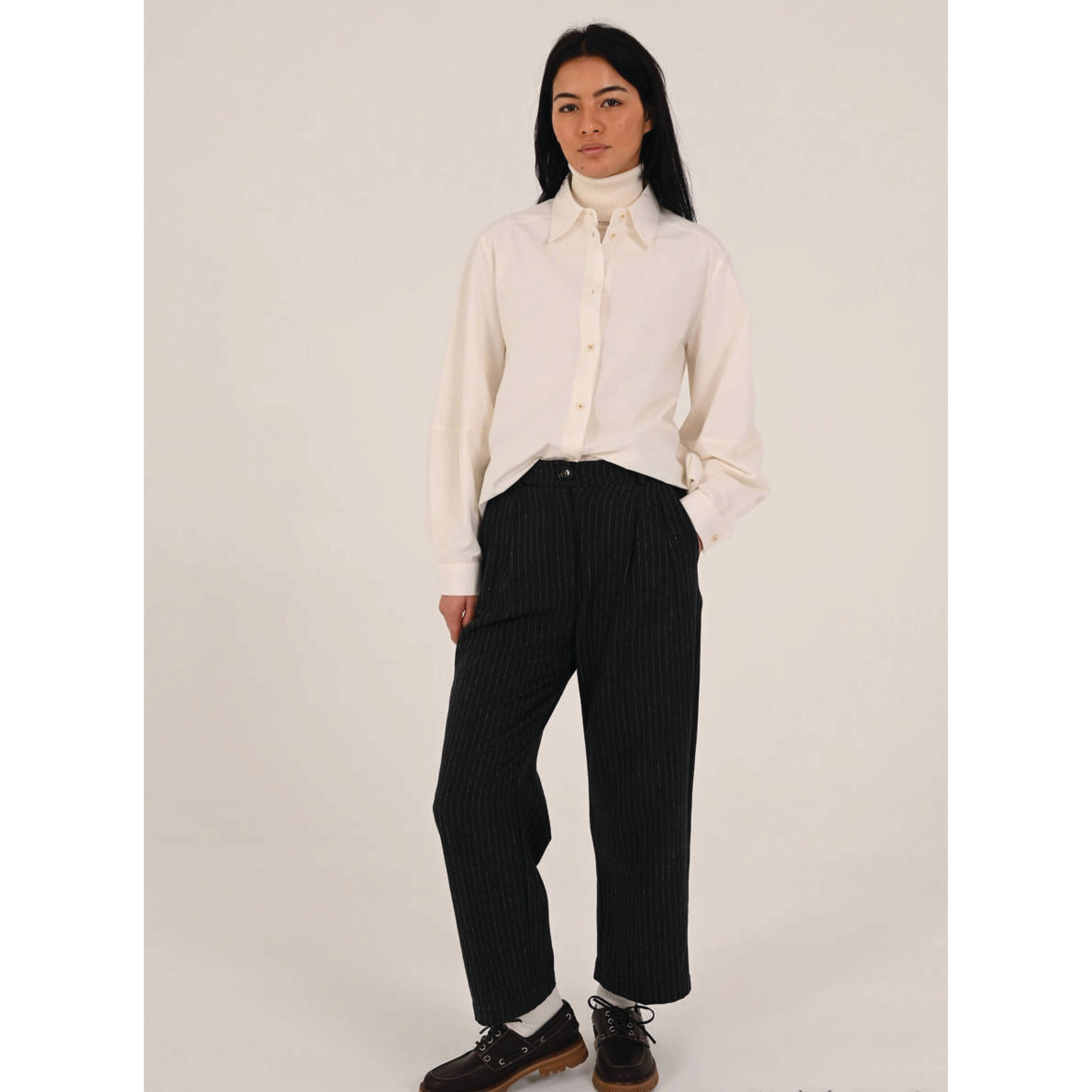 Coupée dans une belle popeline de coton souple et douce, blanc cassé.