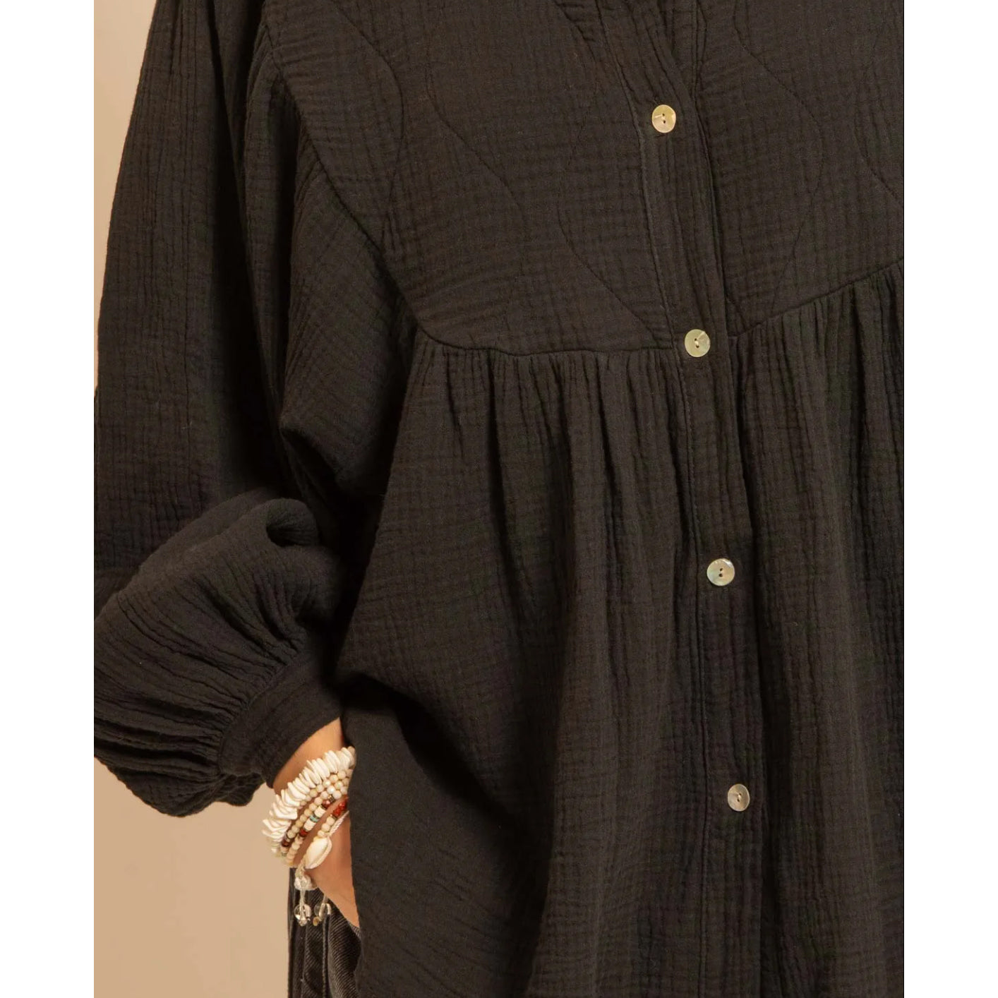 Chemise en gaze de coton avec plastron matelassé.