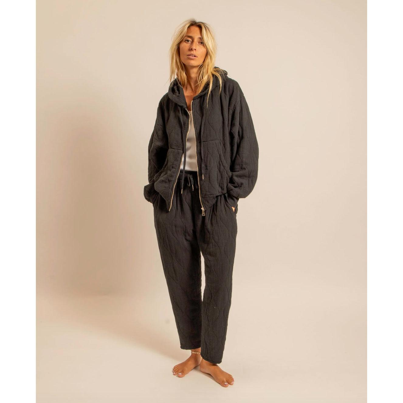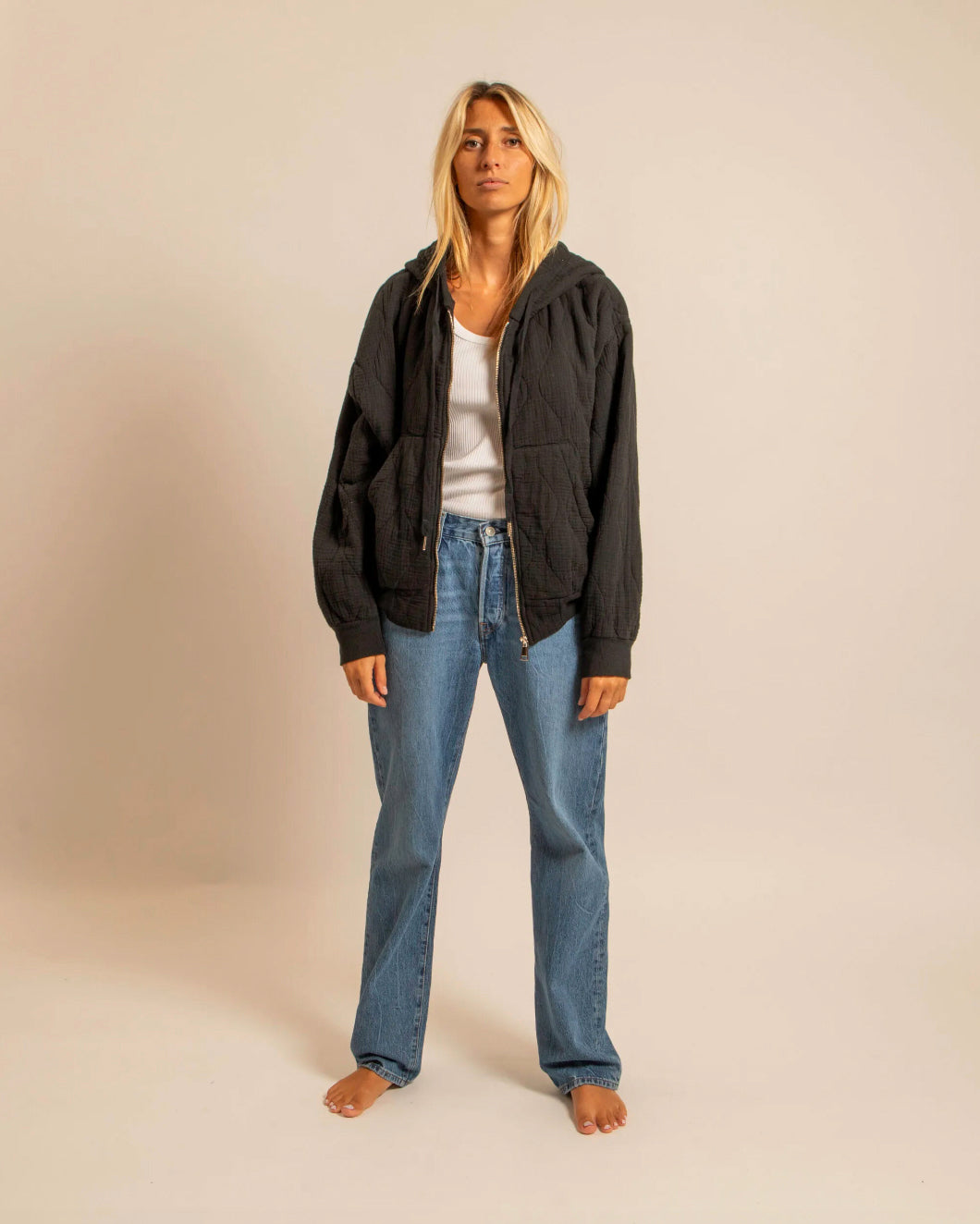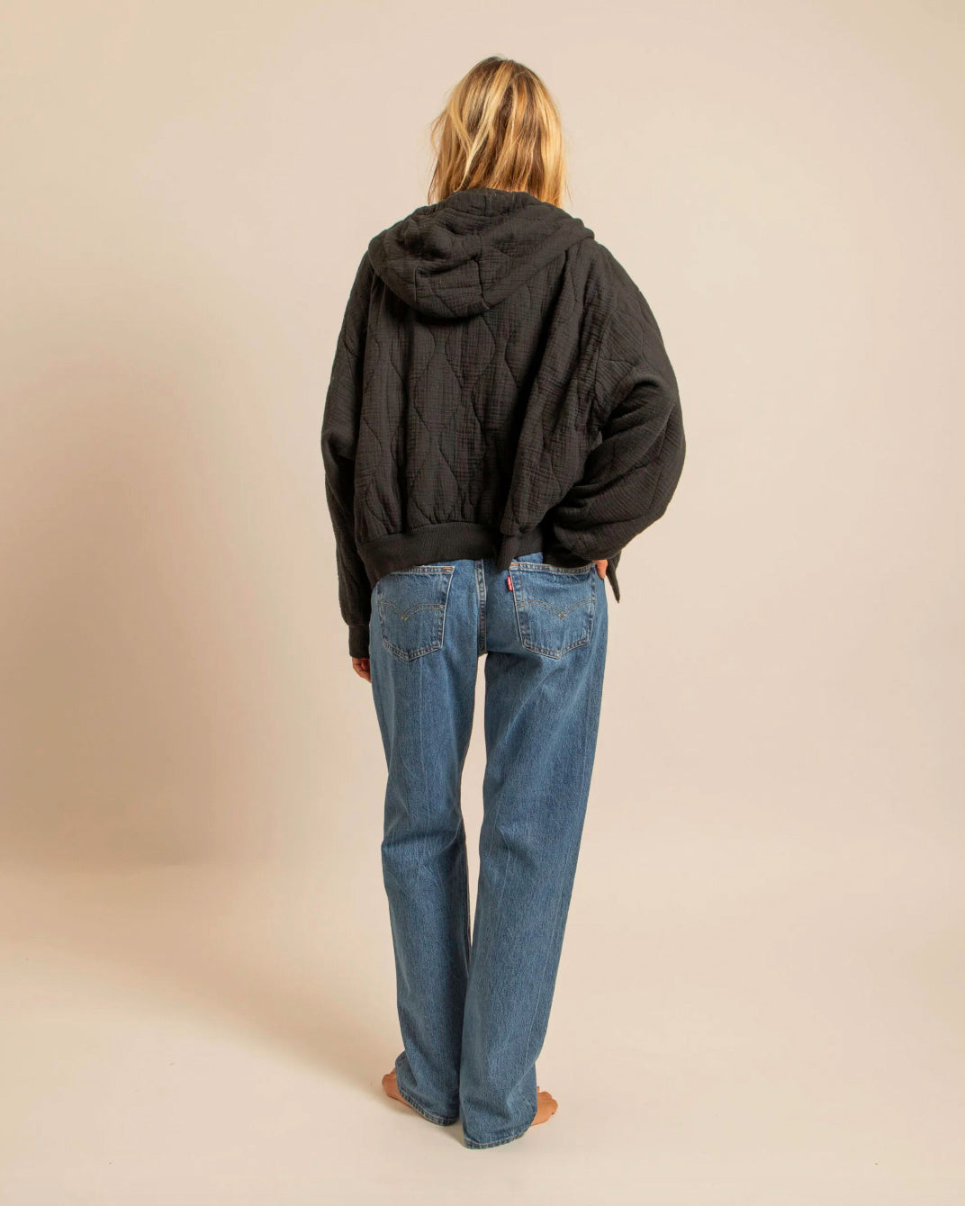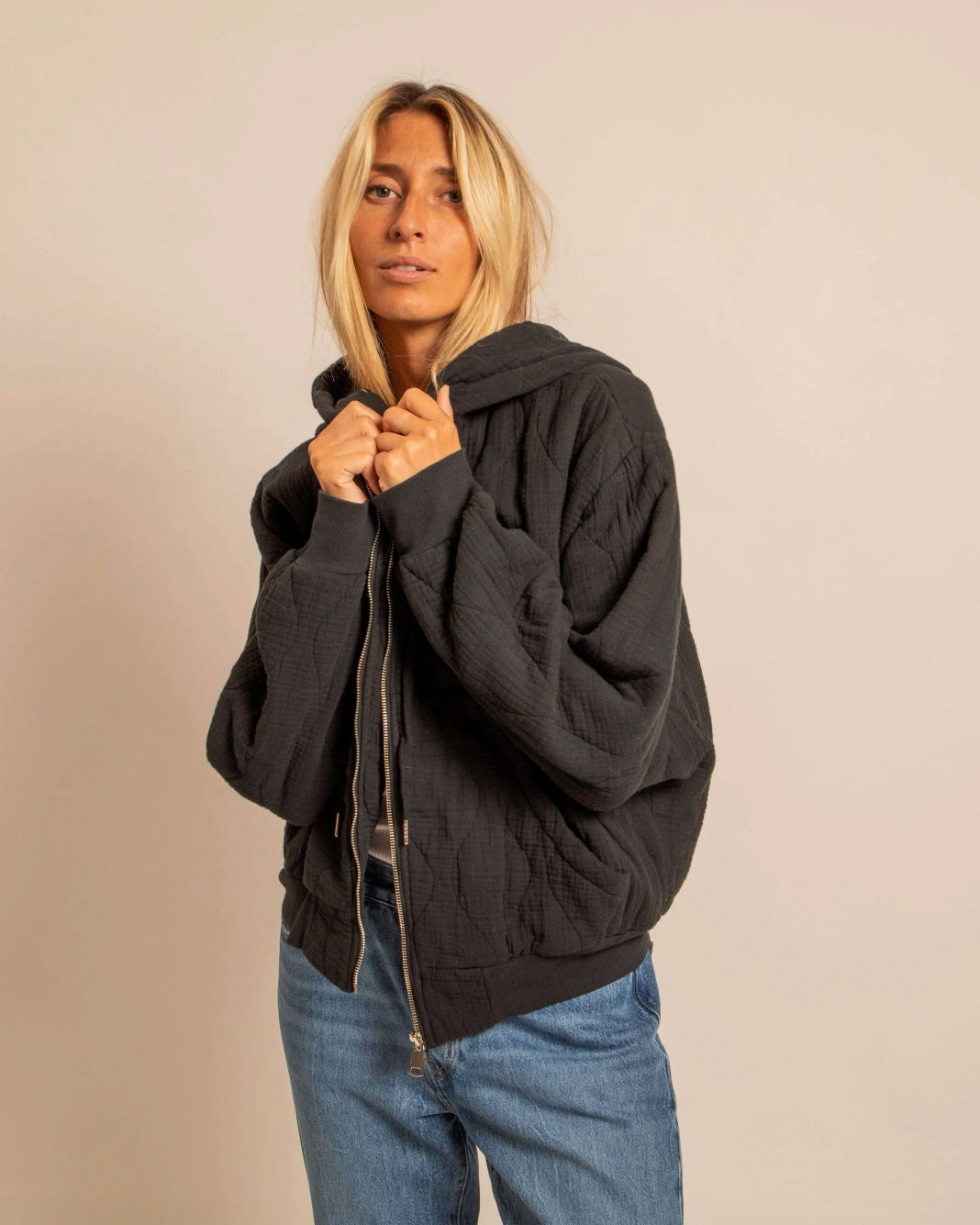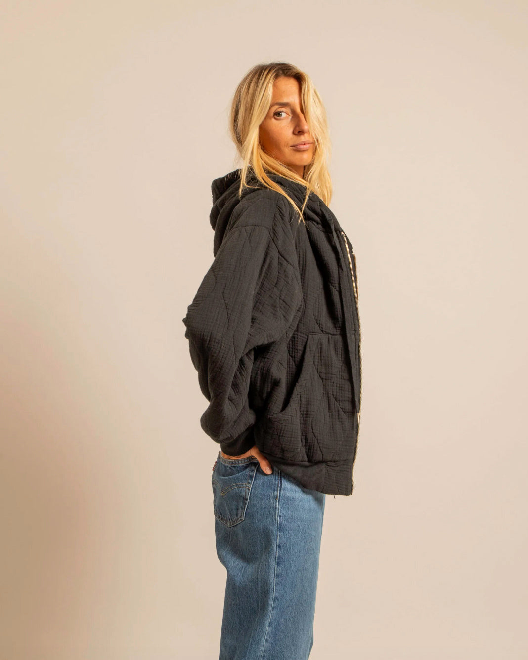 Blouson zippé à capuche oversize en double gaze de coton lavée,