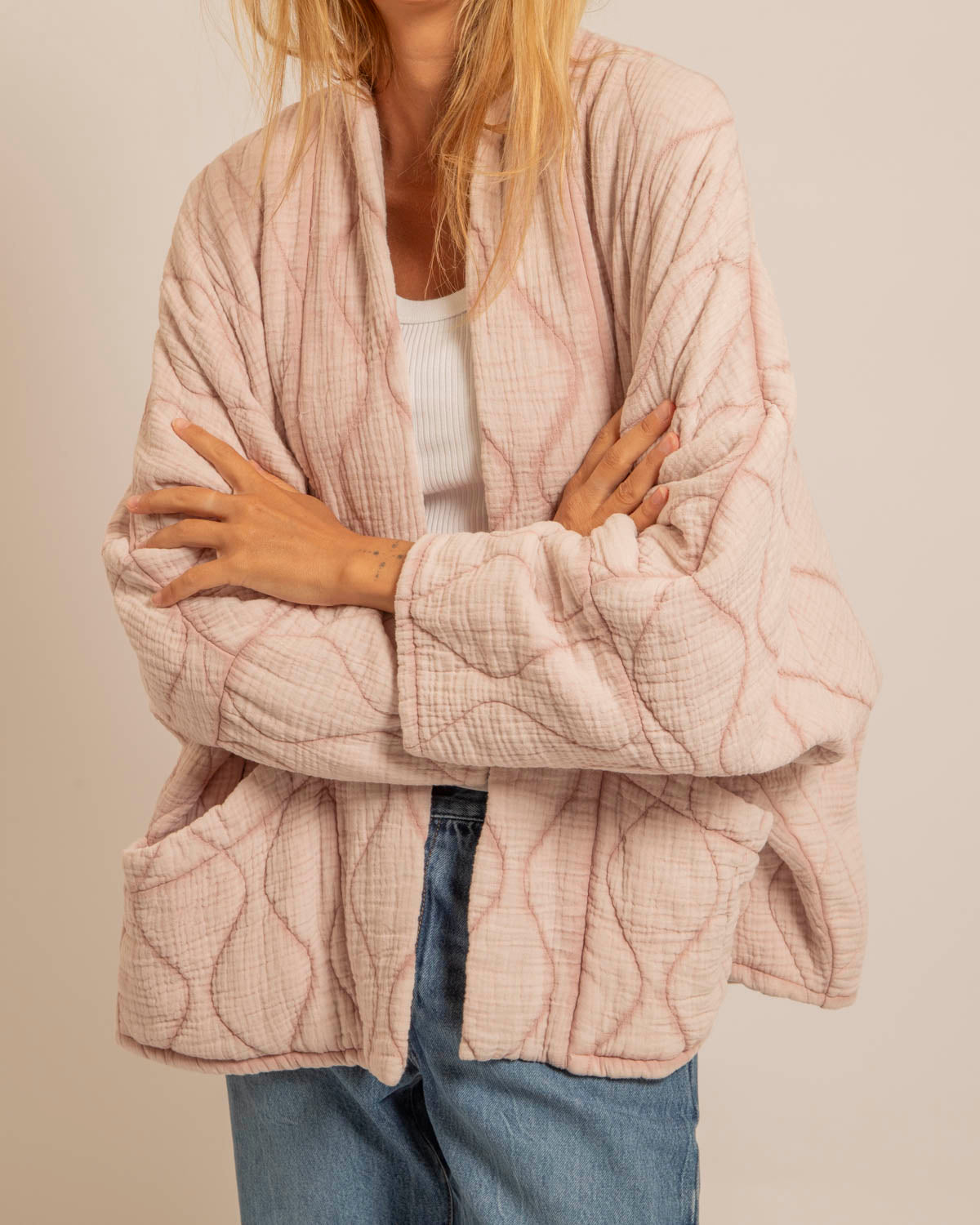 Kimono oversize en double gaze de coton lavée,