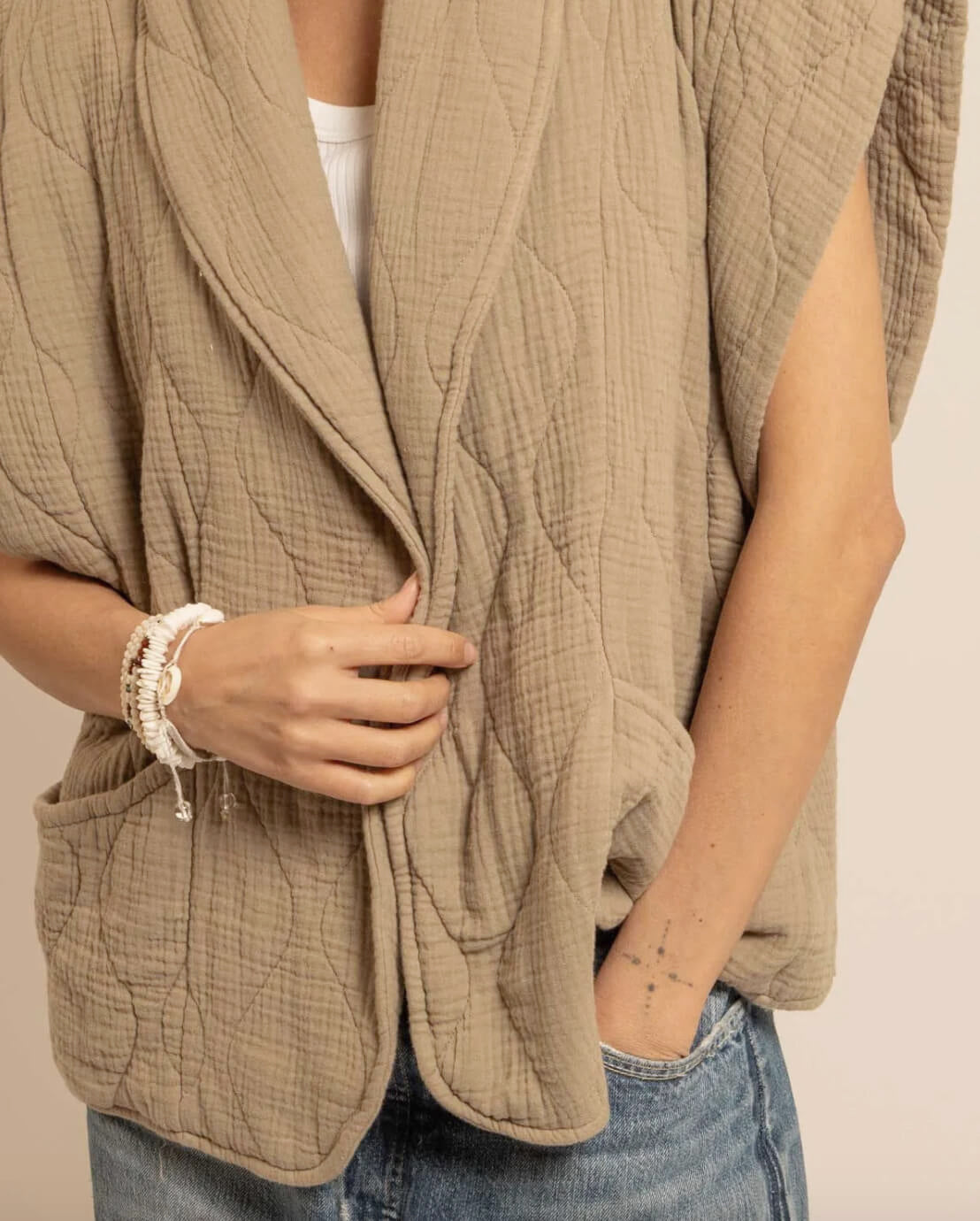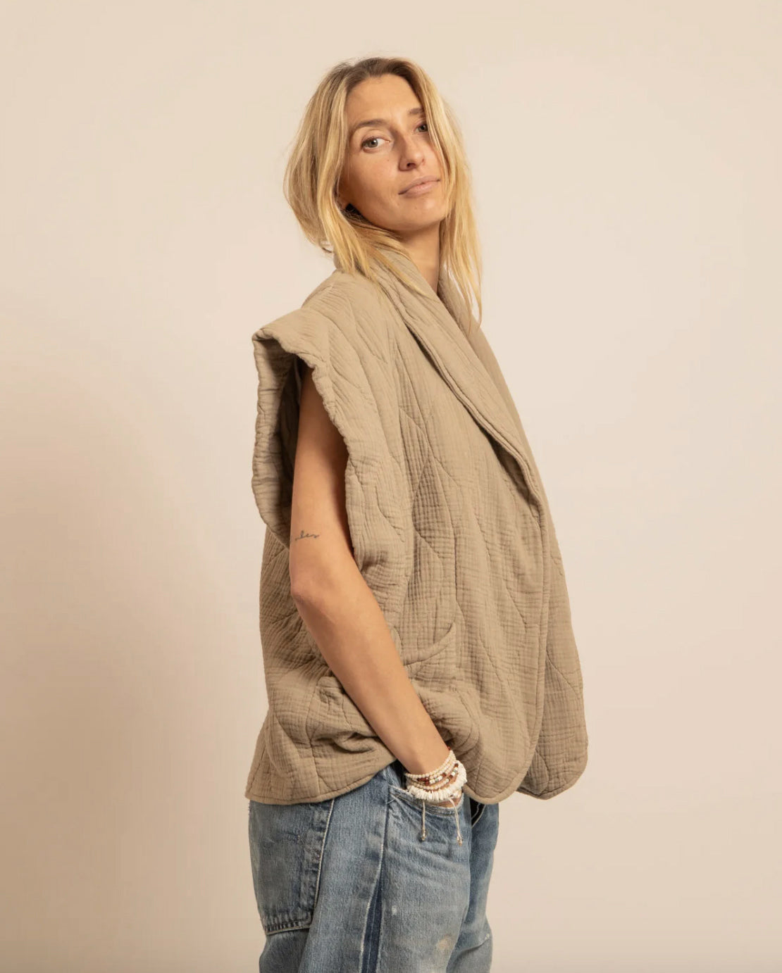 Kimono sans manches oversize, en double gaze de coton lavée,