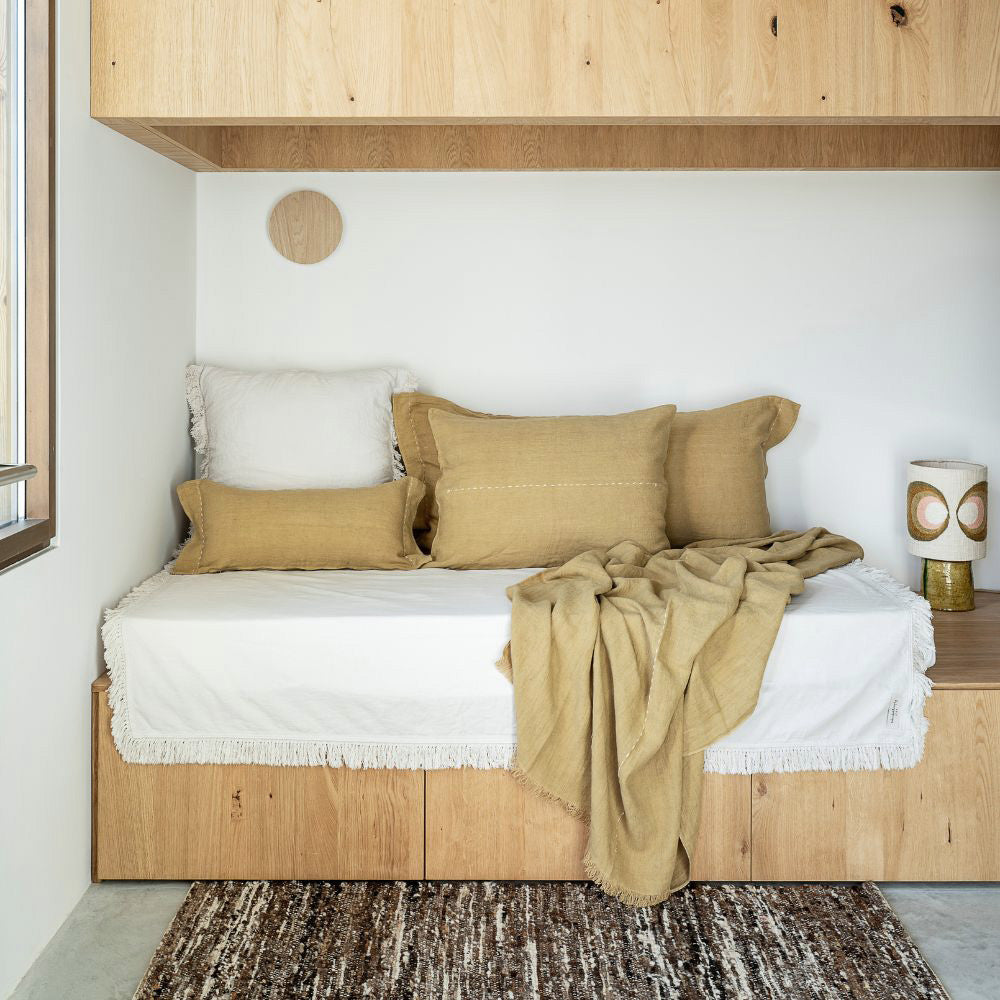 Le coussin CROSS séduit par son format carré et son design minimaliste. Son coloris uni est subtilement rehaussé d’un point contrasté sur l’une des oreilles, détail discret mais raffiné. Confectionné en 100 % lin, il apporte une touche de caractère tout en douceur, parfait pour une décoration à la fois sobre et élégante.