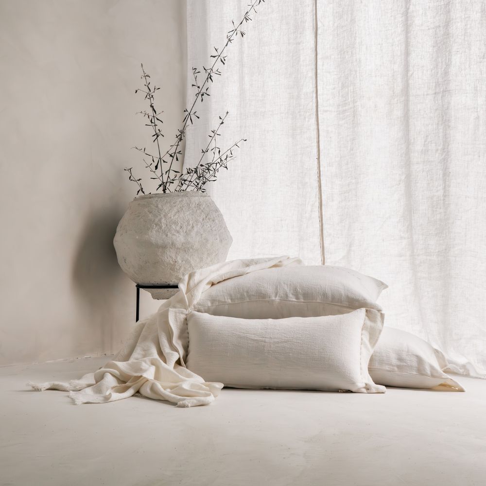 Le gros coussin CRUSH se distingue par ses dimensions généreuses de 55×110 cm et son design épuré. Son coloris uni est rehaussé de fines coutures contrastées sur les côtés, apportant une touche subtile d’élégance. Confectionné en 100 % lin, il allie confort et caractère pour une décoration minimaliste et raffinée.