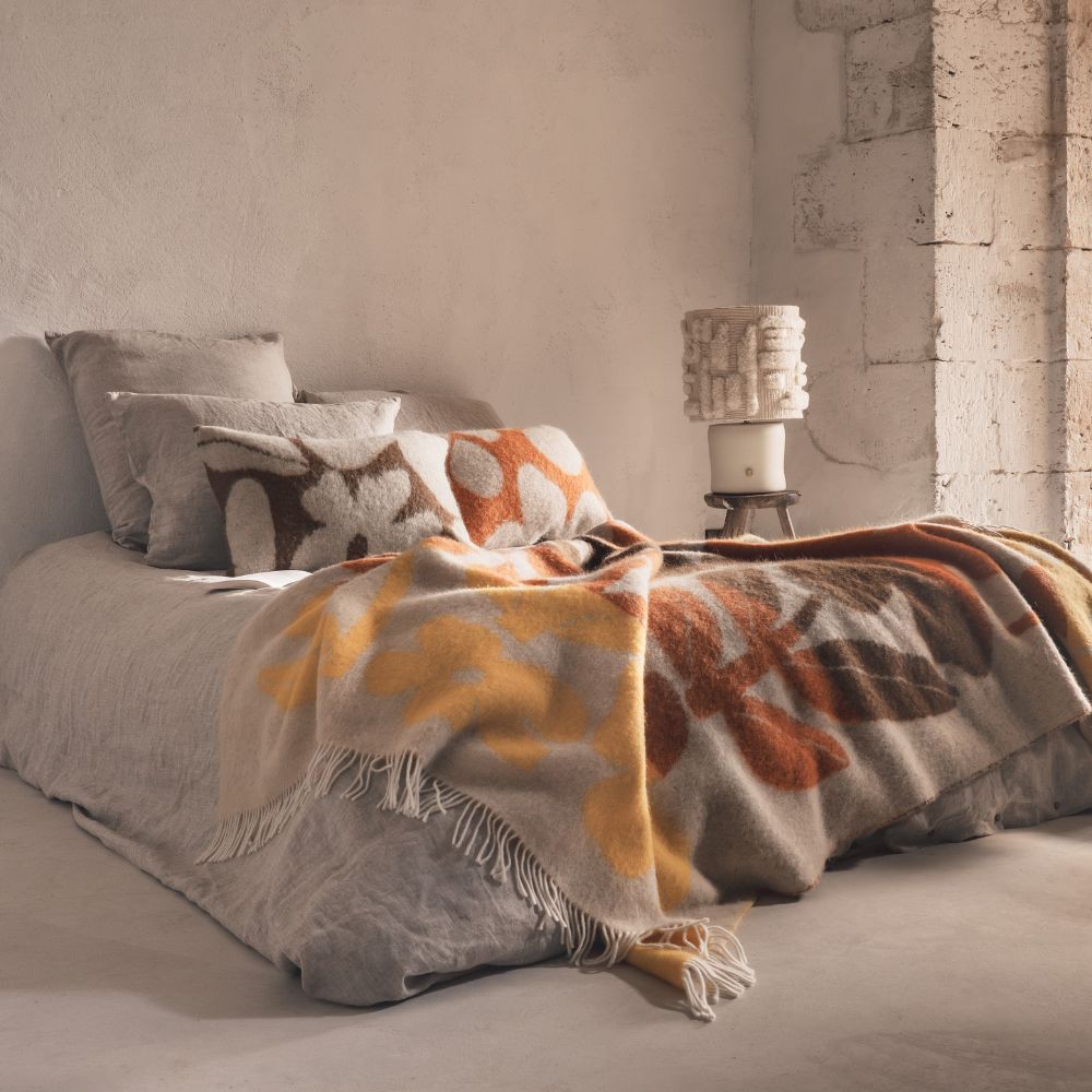 Apportez une touche de couleurs énergisantes à votre intérieur avec le plaid en laine MADONNE, dans son coloris Camel. Orné d’un motif floral audacieux dans des tons chauds et rehaussé d’une finition frangée élégante, ce plaid apporte une touche de caractère à votre décoration.