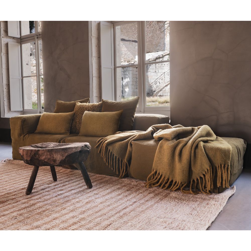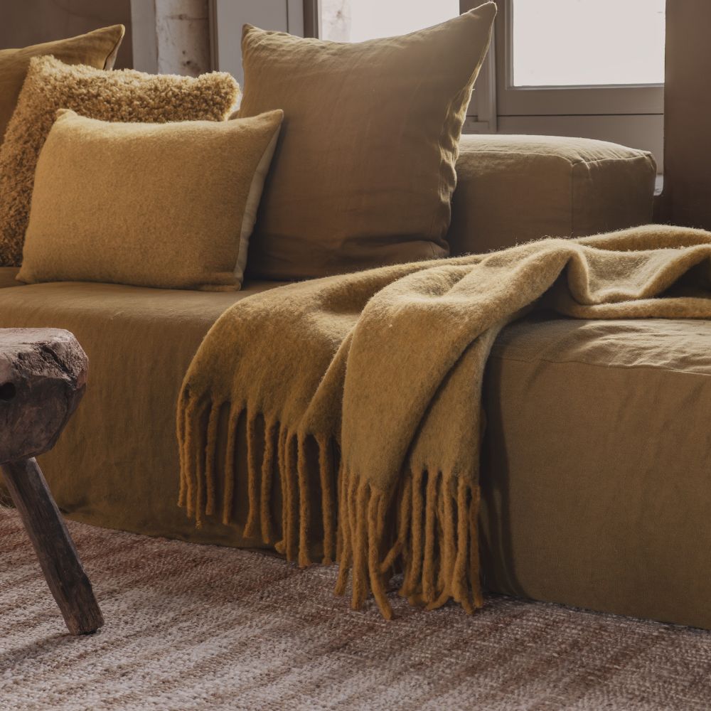 Réhaussez votre intérieur avec le plaid en laine CRUMBLE dans sa teinte Miel Chiné. Ces nuances dorées et lumineuses insuffle une ambiance chaleureuse et naturelle à votre décoration. La laine moelleuse associée aux finitions frangées généreuses sublime votre lit ou votre canapé avec douceur et caractère.