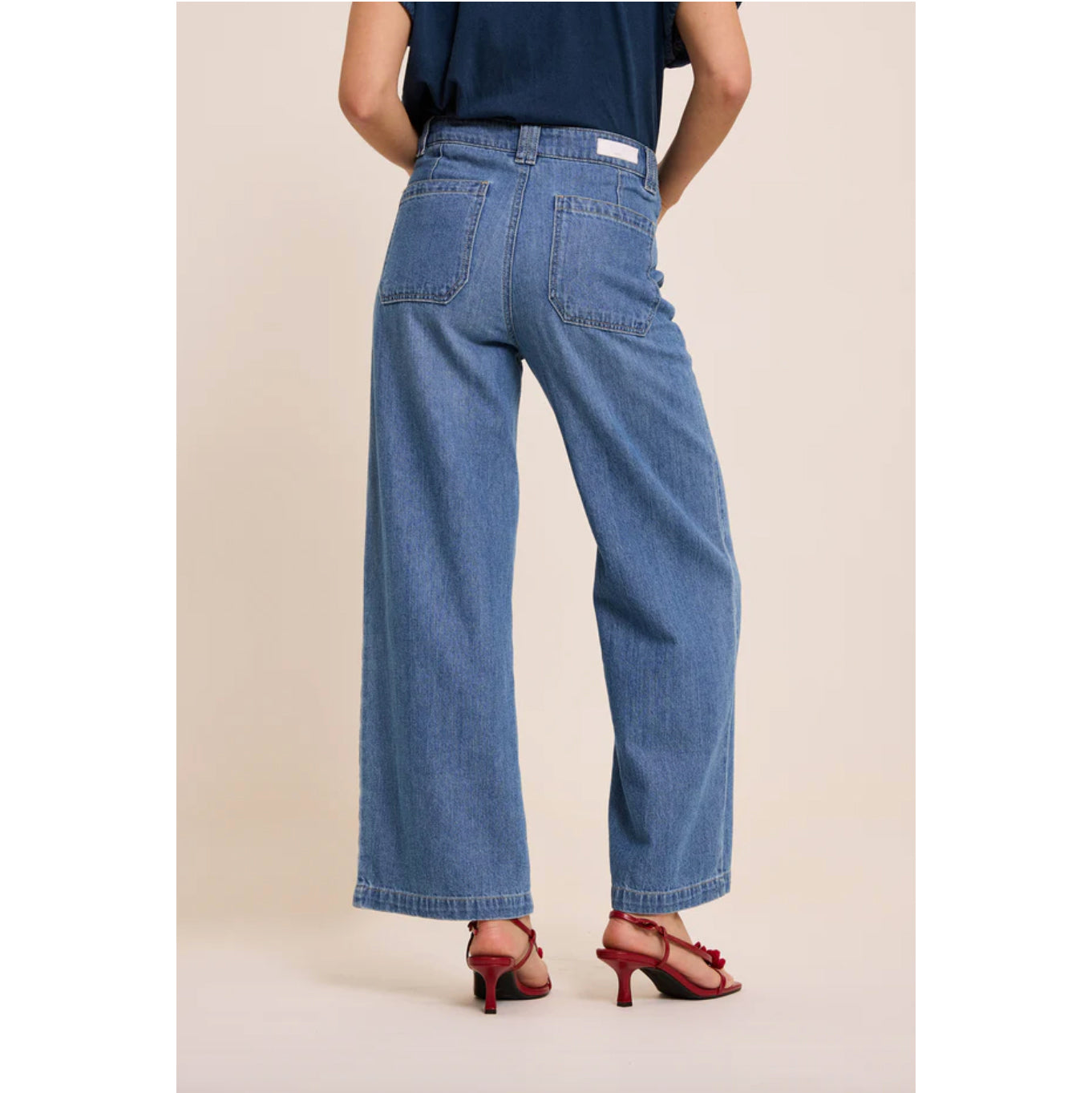Fermeture avec un bouton de marque FIVE, braguette zip métal.