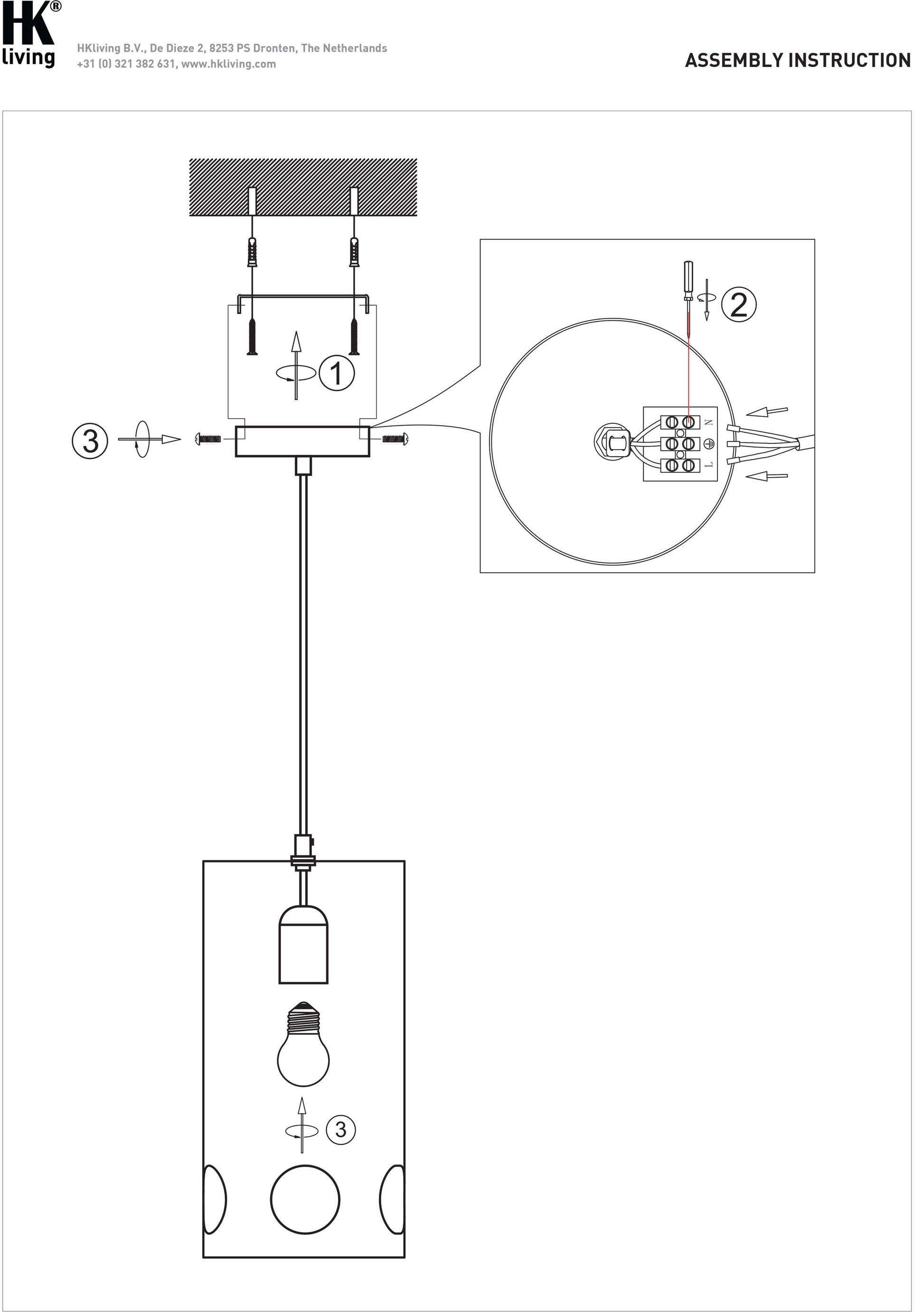 Système électrique inclus, avec rosace de plafond, douille et cordon électrique recouvert textile , longueur 2m