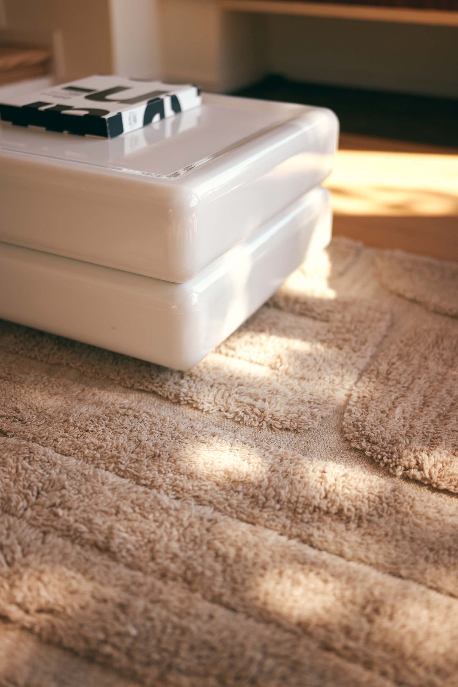Tapis en laine épaisse à motif en relief, coloris Calcaire (beige et écru chinés).