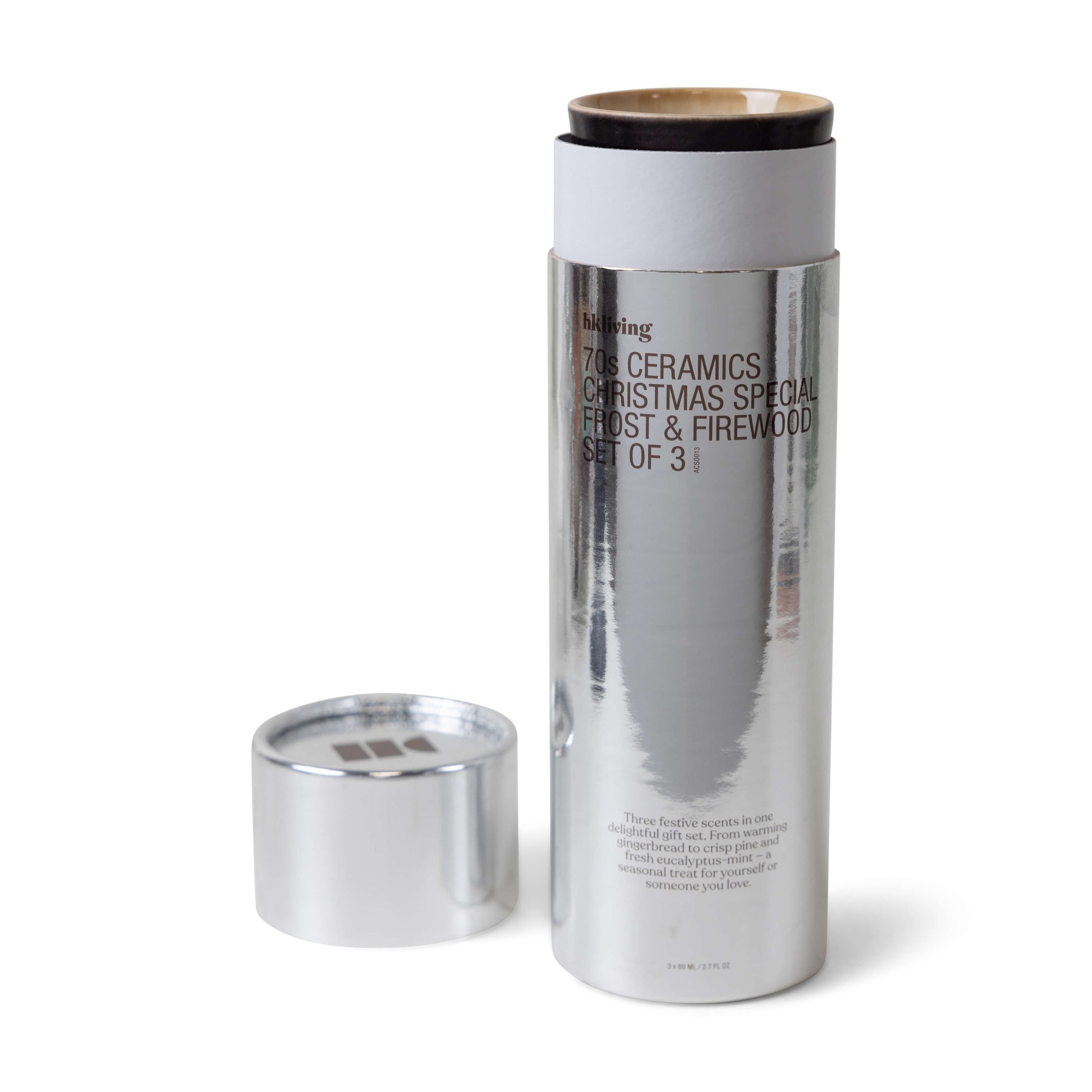 Le cadeau idéal pour les amoureux des parfums : trois mini-bougies présentées dans nos tasses ristretto en céramique, emblématiques des années 70. Chaque bougie diffuse un parfum festif – pain d’épices, bois d’hiver et feuilles givrées – dans un format compact et élégant.