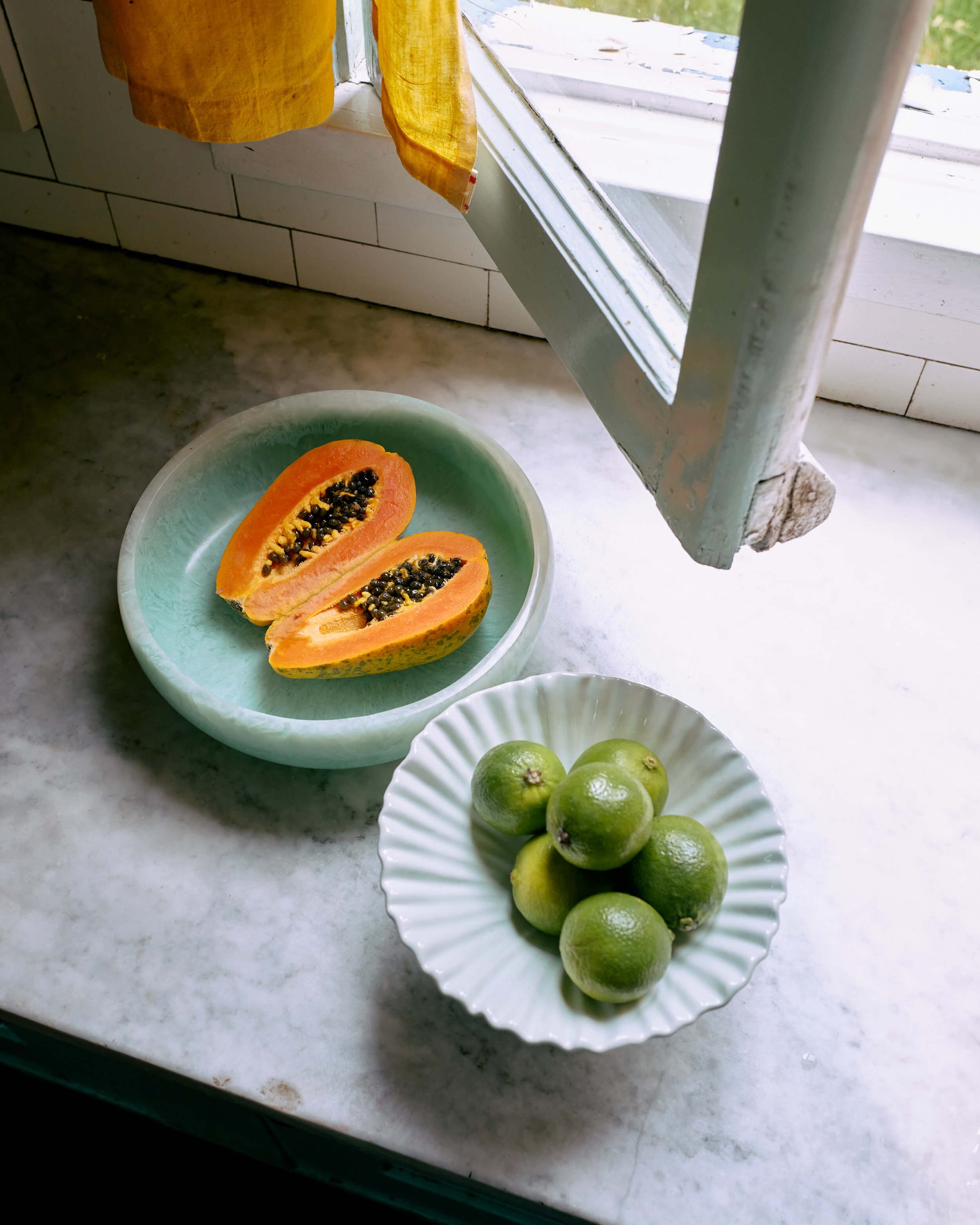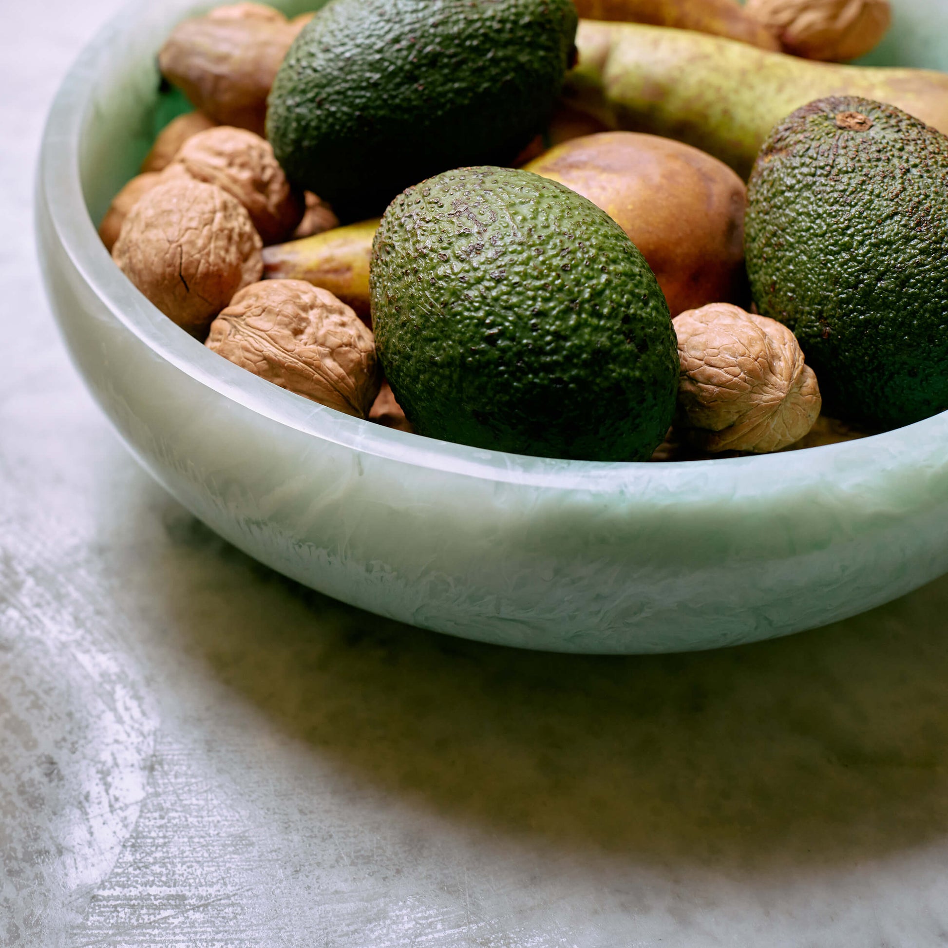 Ce bol en résine apporte une touche de fraîcheur grâce à sa teinte menthe semi-translucide. La lumière traverse la matière, révélant ses courbes douces et sa finition lisse et brillante. À la fois sculptural et fonctionnel, il ajoute une note rafraîchissante à tout espace, de la table basse à une étagère ouverte.