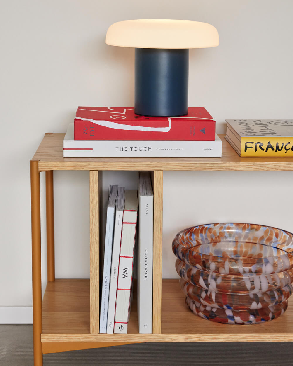 En verre semi-opaque, finition bords festonés.