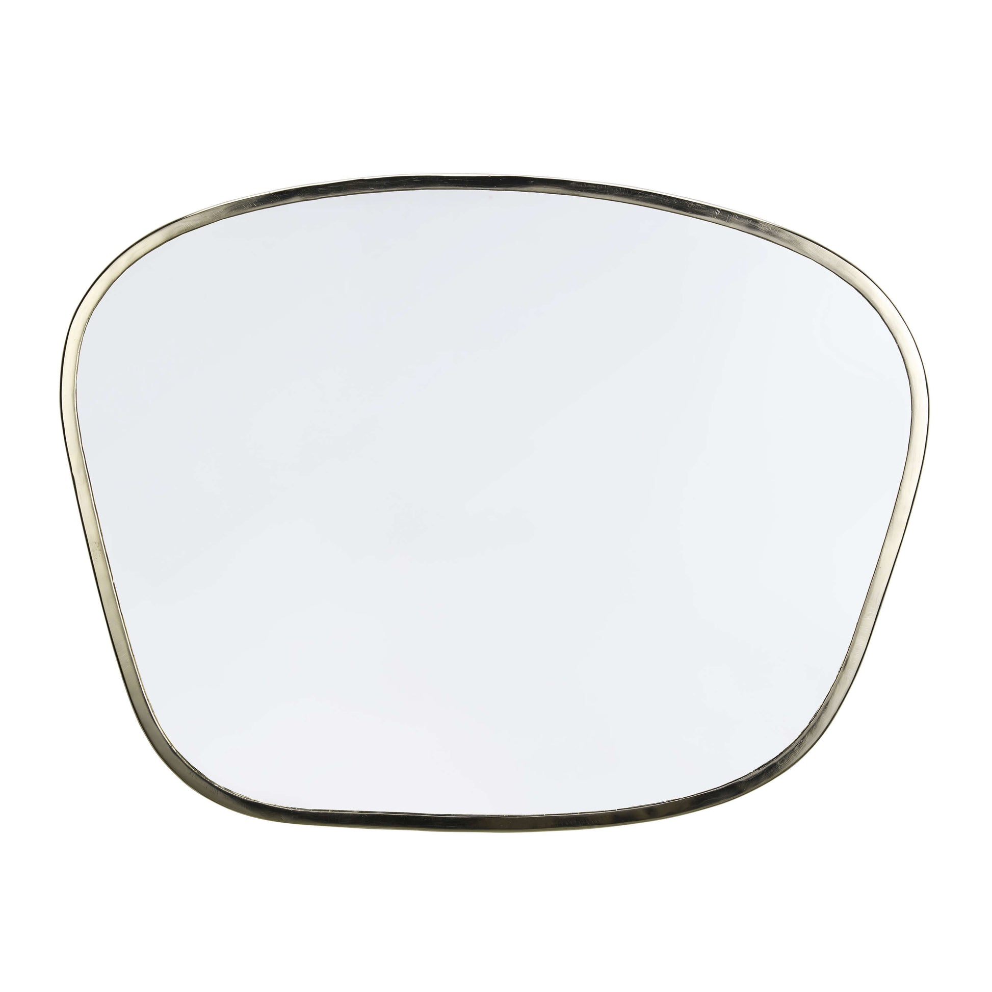 Miroir à cadre doré, forme douce et organique. Inspiré du design des années 1950, il s'intègre harmonieusement aux espaces modernes grâce à son élégance intemporelle.