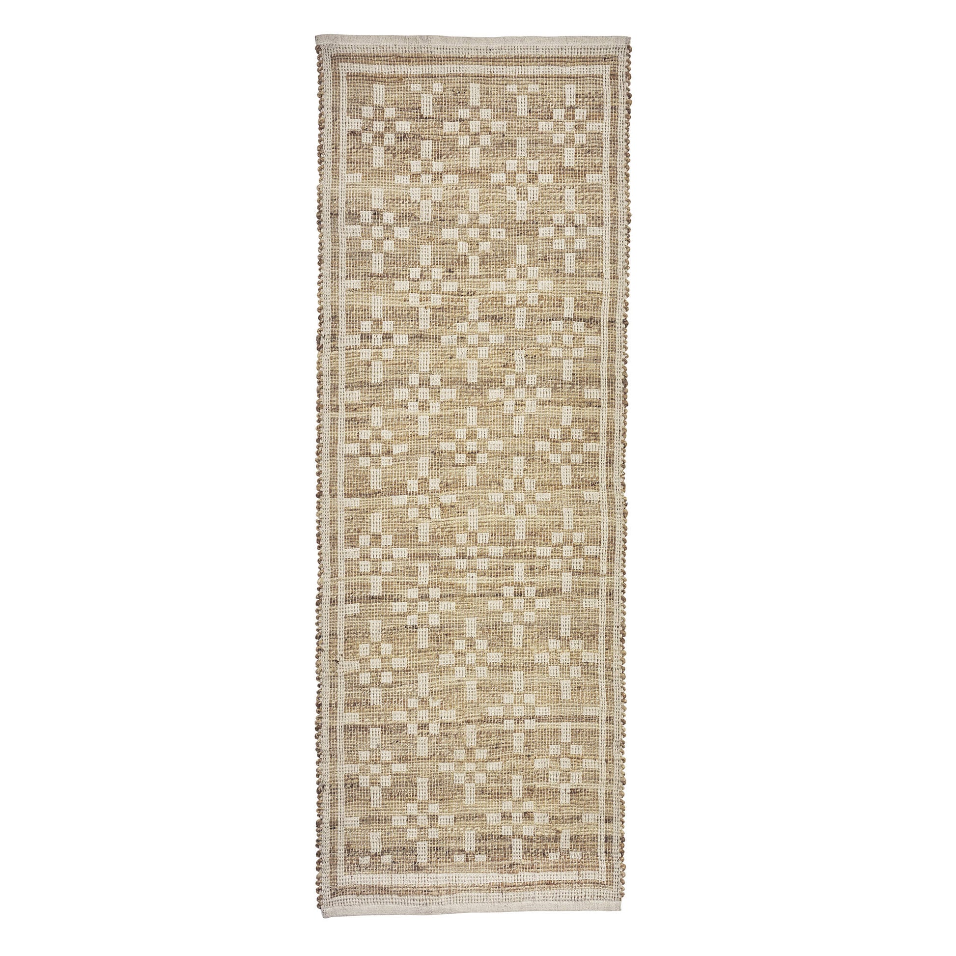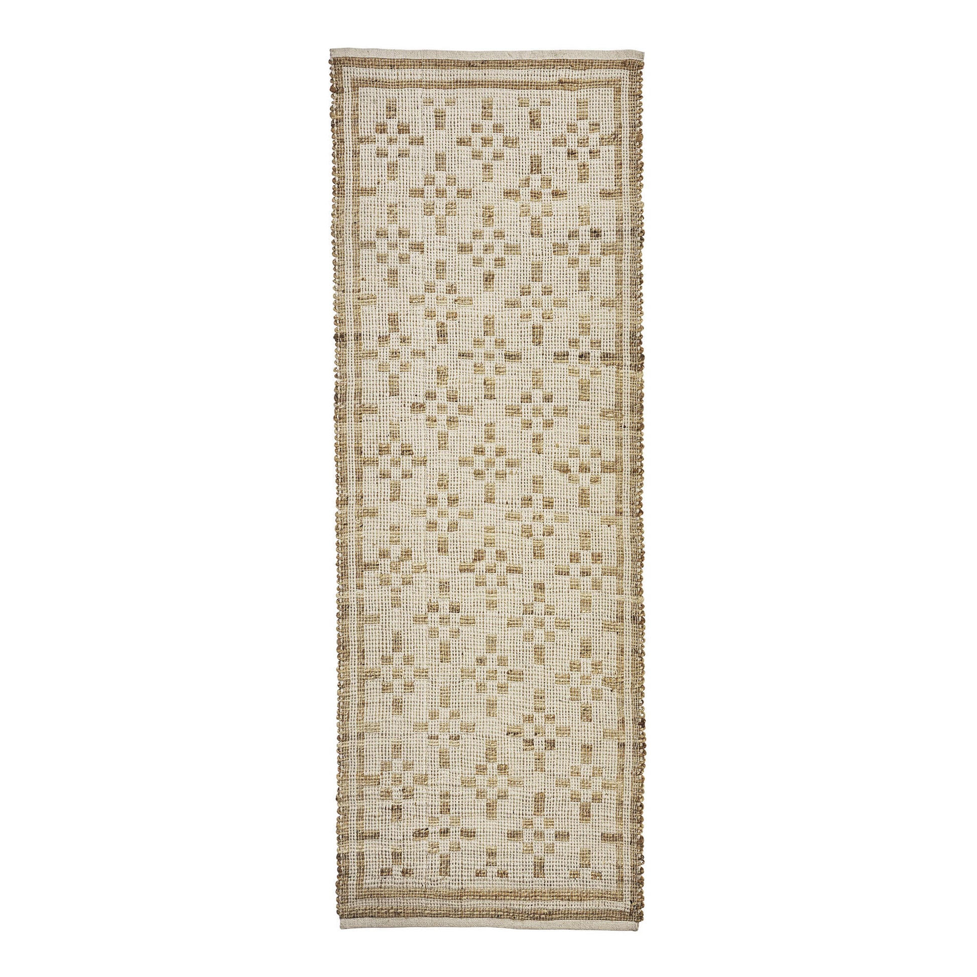 Ce tapis de couloir en jute, confectionné artisanalement en mélange de coton et de jute, arbore des teintes blanc cassé et naturelles. Son tissage artisanal lui confère robustesse et durabilité, le rendant idéal pour différentes pièces et apportant chaleur et texture à n'importe quel espace.