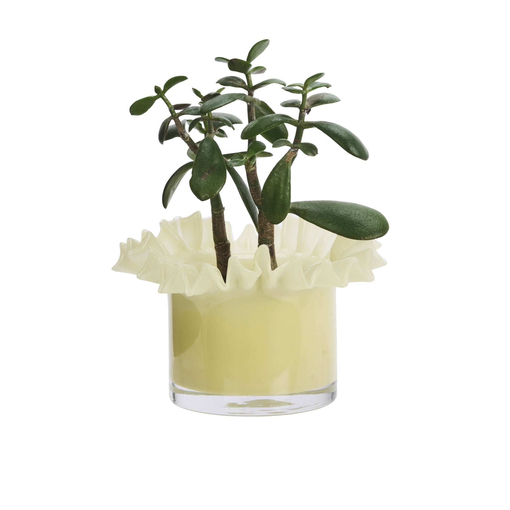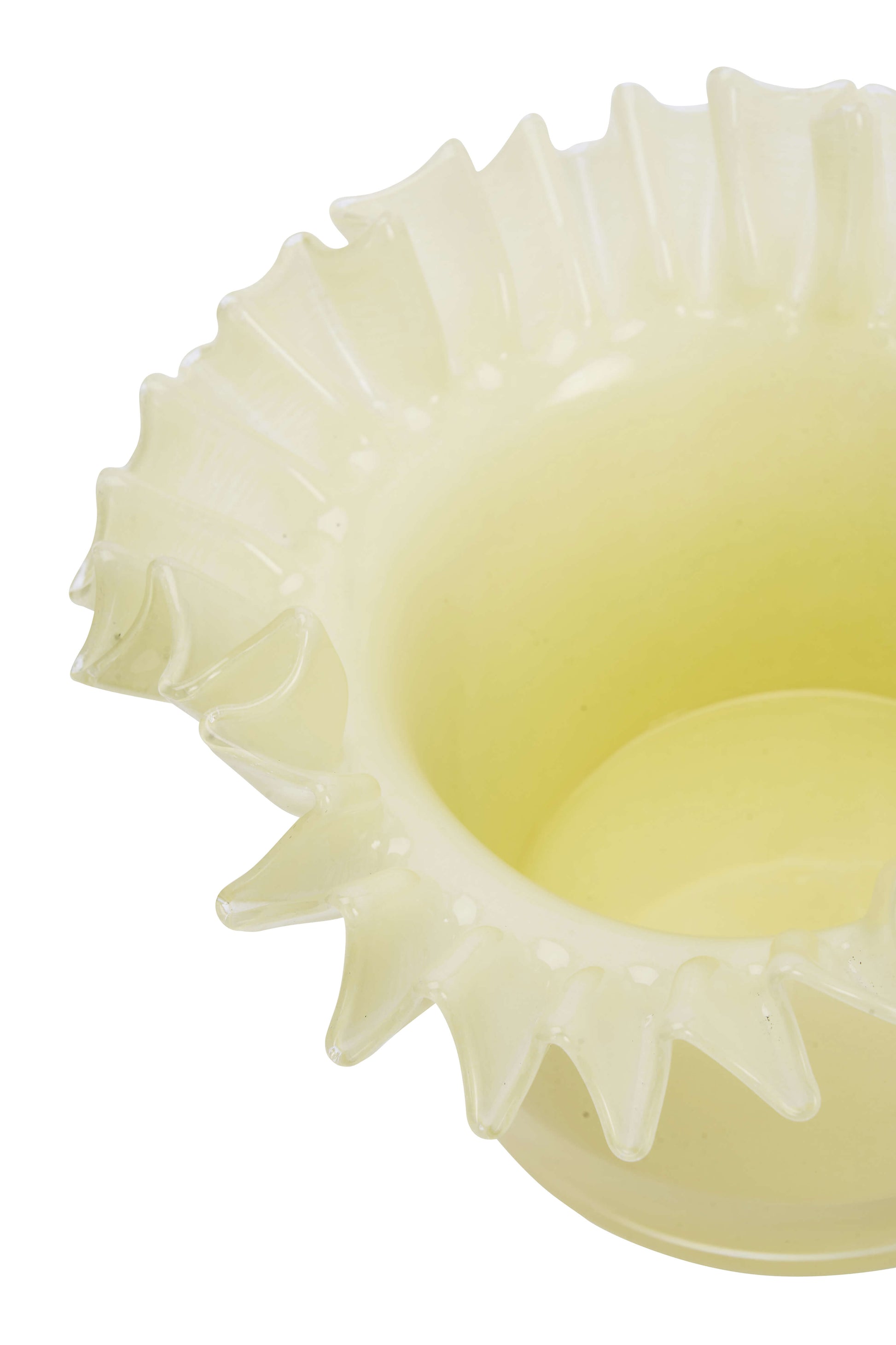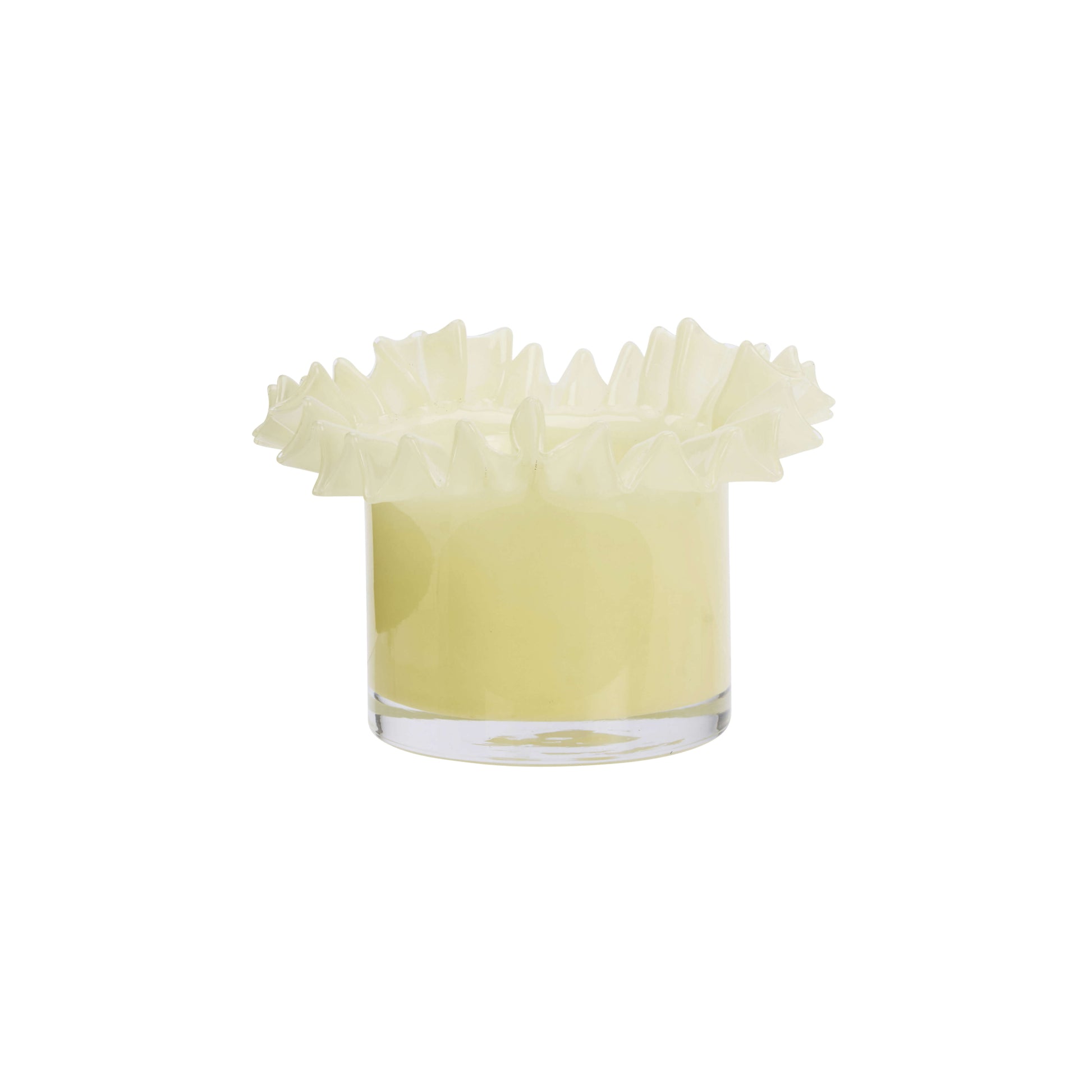 Vase en verre avec rebord froncé, coloris jaune paille.