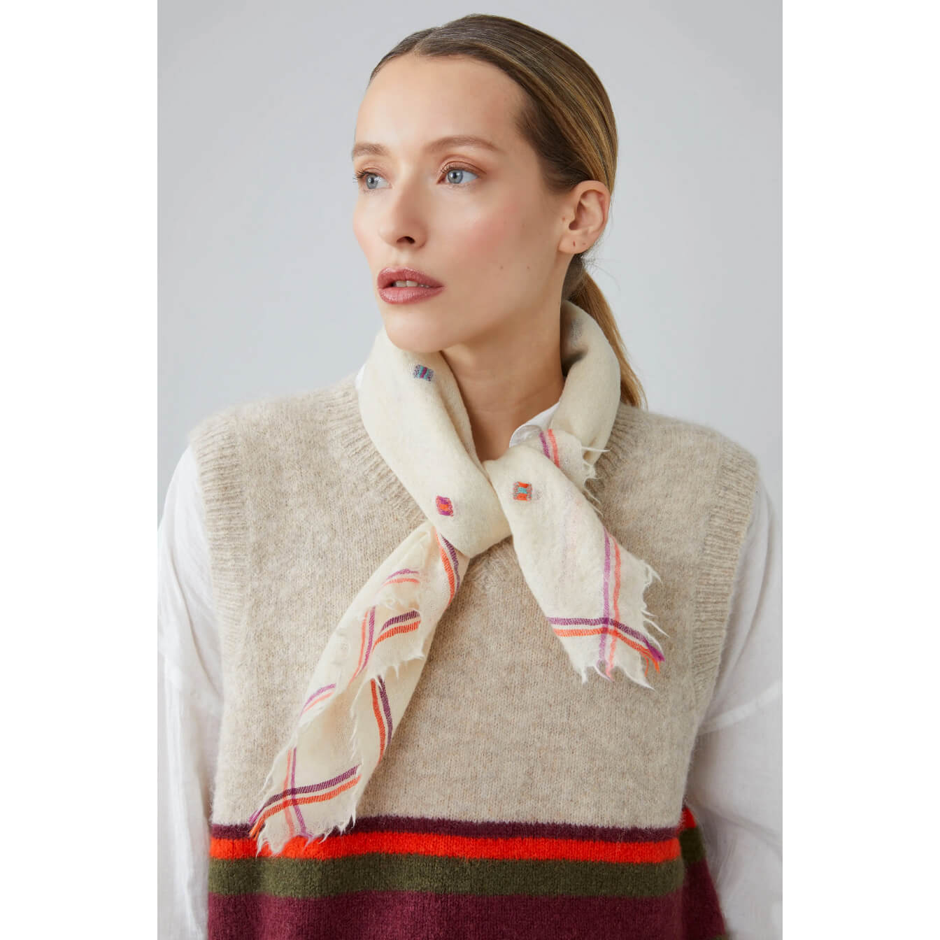 Format carré 70x70 cm, idéal à nouer autour du cou ou dans les cheveux.