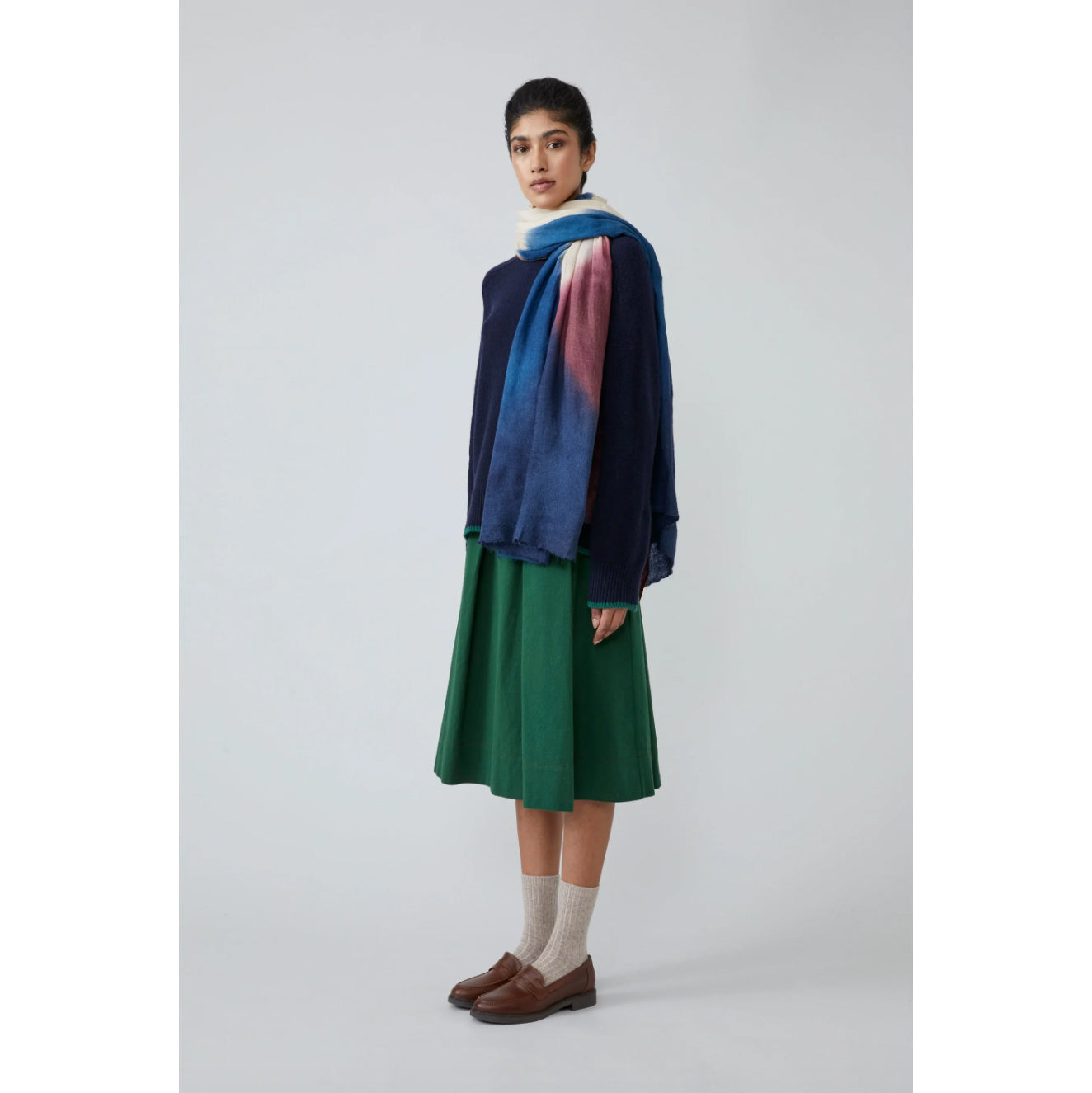 Confectionnée en laine et soie, elle allie fluidité, légèreté et caractère.