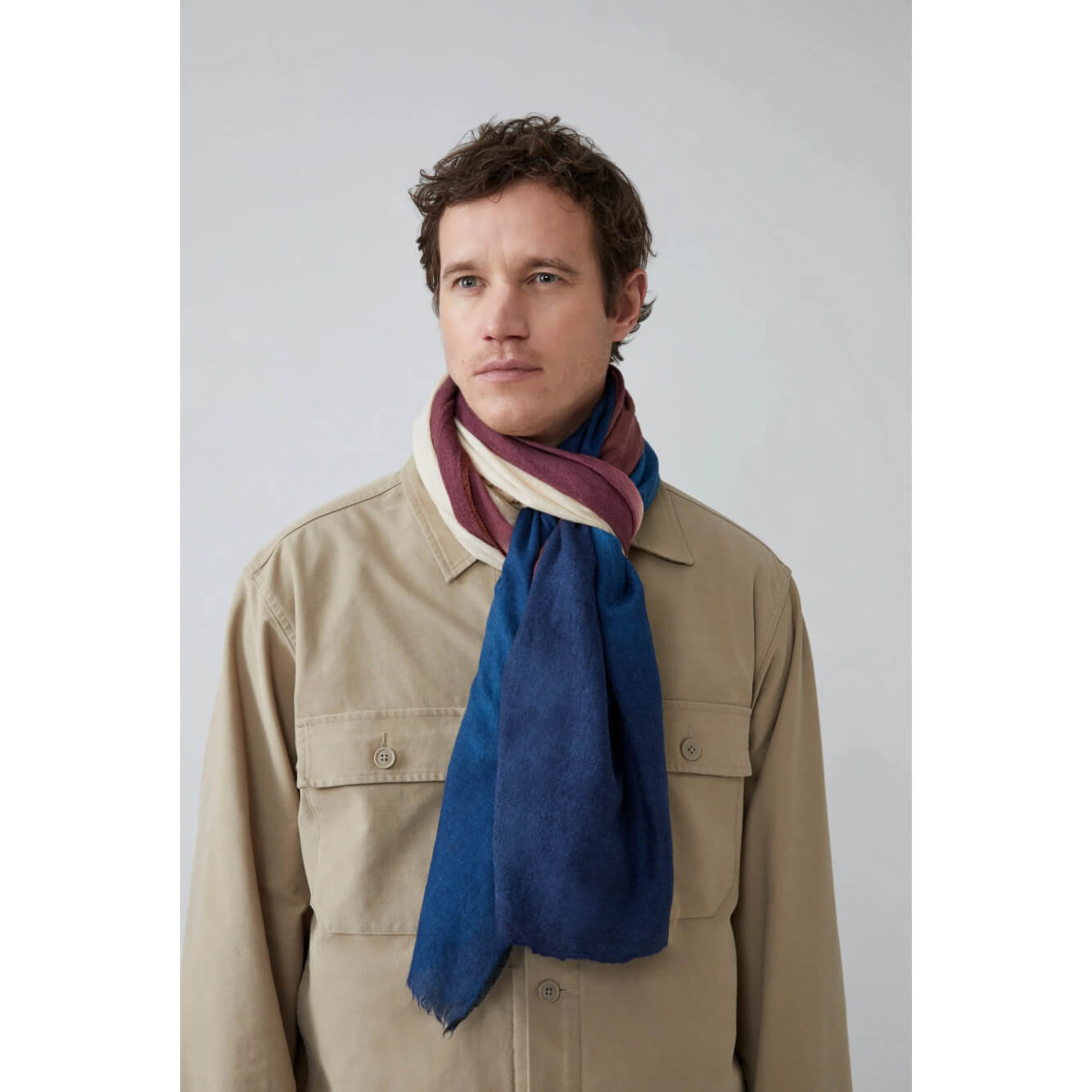 L’écharpe Flag N°805 reprend l’élan des drapeaux flottant dans les stades pour en faire une pièce à la fois graphique et raffinée.