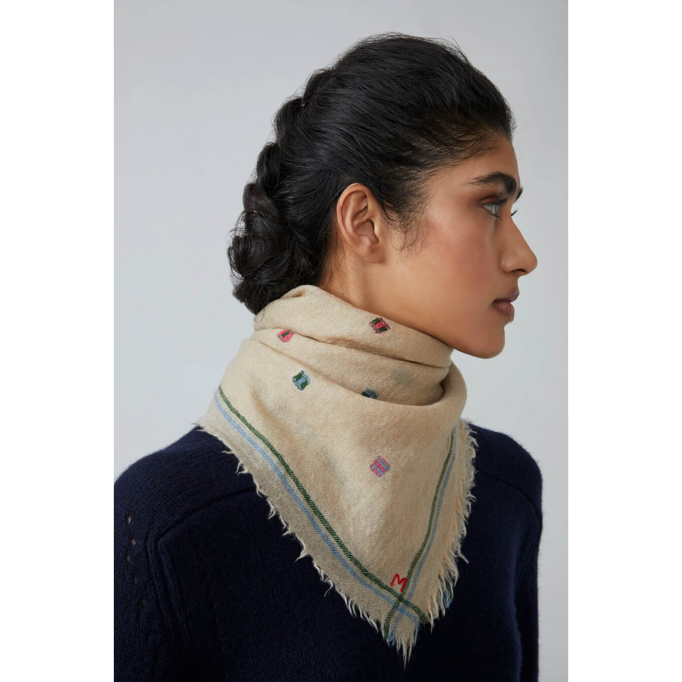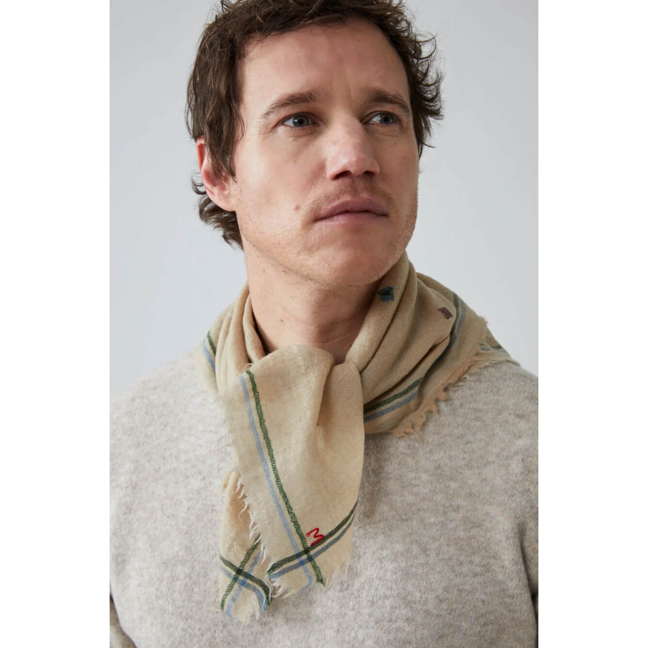 Le foulard Chelsea N°815 célèbre l’art du tissage traditionnel avec ses petits motifs en forme de drapeaux, réalisés à la main selon la technique ancestrale indienne du jamdani. Léger et fluide, il évoque l’élégance intemporelle d’un clan uni par ses symboles, mêlant héritage artisanal et modernité avec une délicatesse singulière.