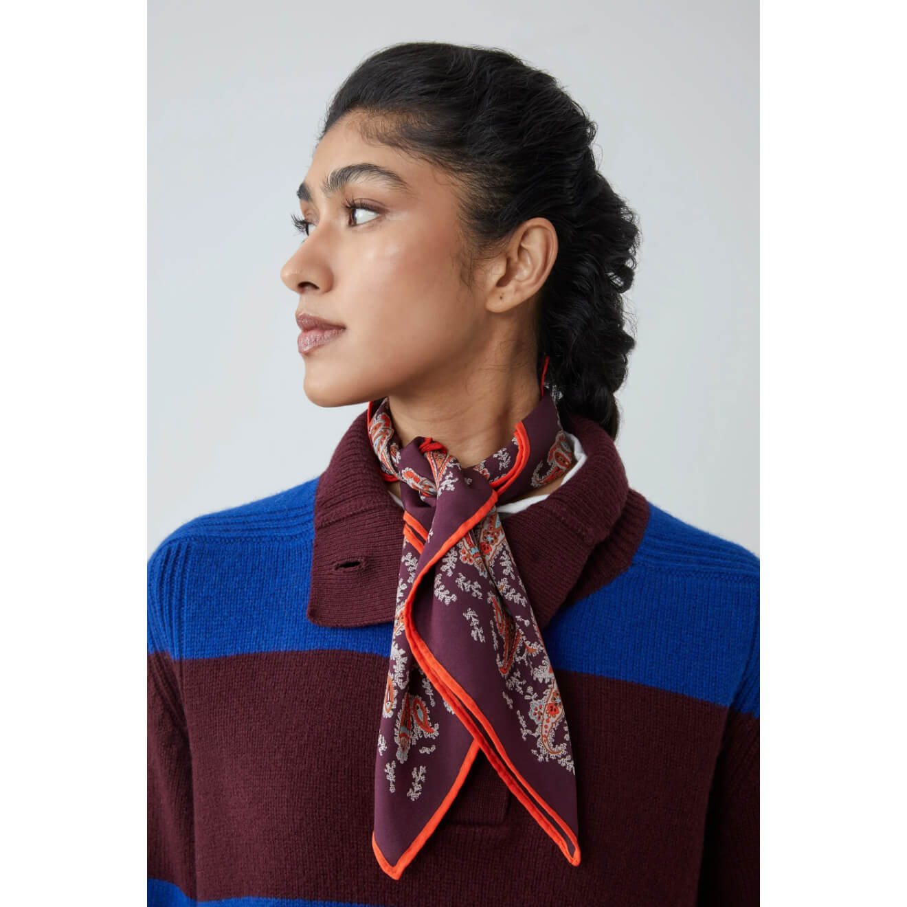 Son format carré de 65 x 65 cm offre une polyvalence idéale : noué autour du cou, porté dans les cheveux ou en accessoire de sac, il accompagne avec légèreté les mouvements du quotidien.