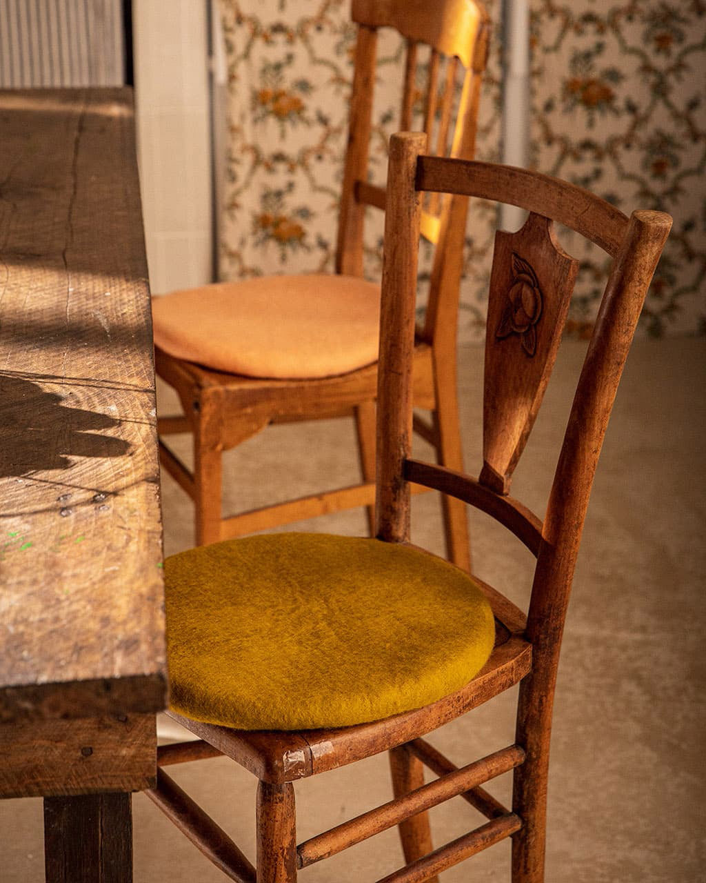 Fabrication artisanale issue du commerce équitable - Galette de chaise en feutre, faite main au Népal.