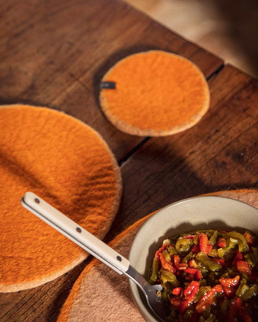 Fabriquées à Katmandou par nos artisanes, ces pastilles unies ou bicolores en laine feutrée sont à utiliser sous un vase ou une céramique pour protéger vos meubles ou créer une belle ambiance couleur!
