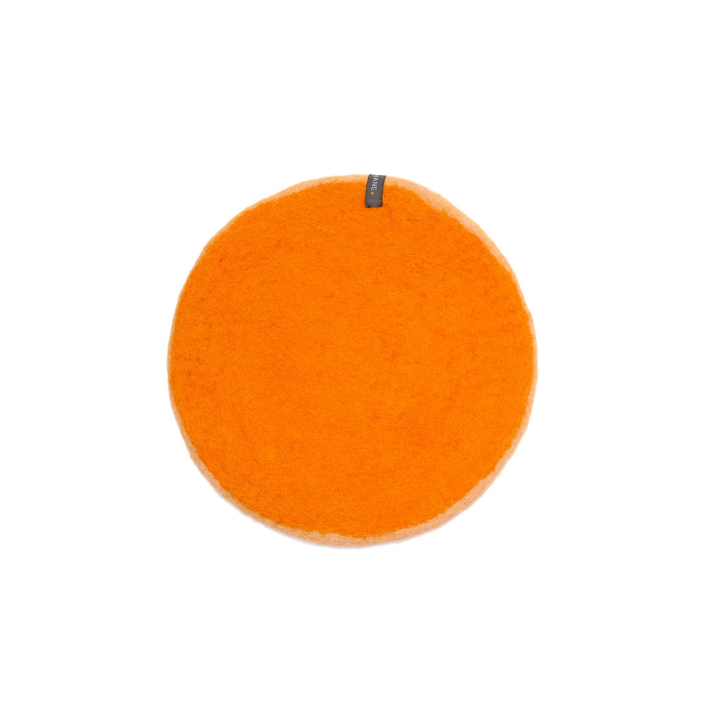 Pastille ronde en feutre de laine au toucher doux.
