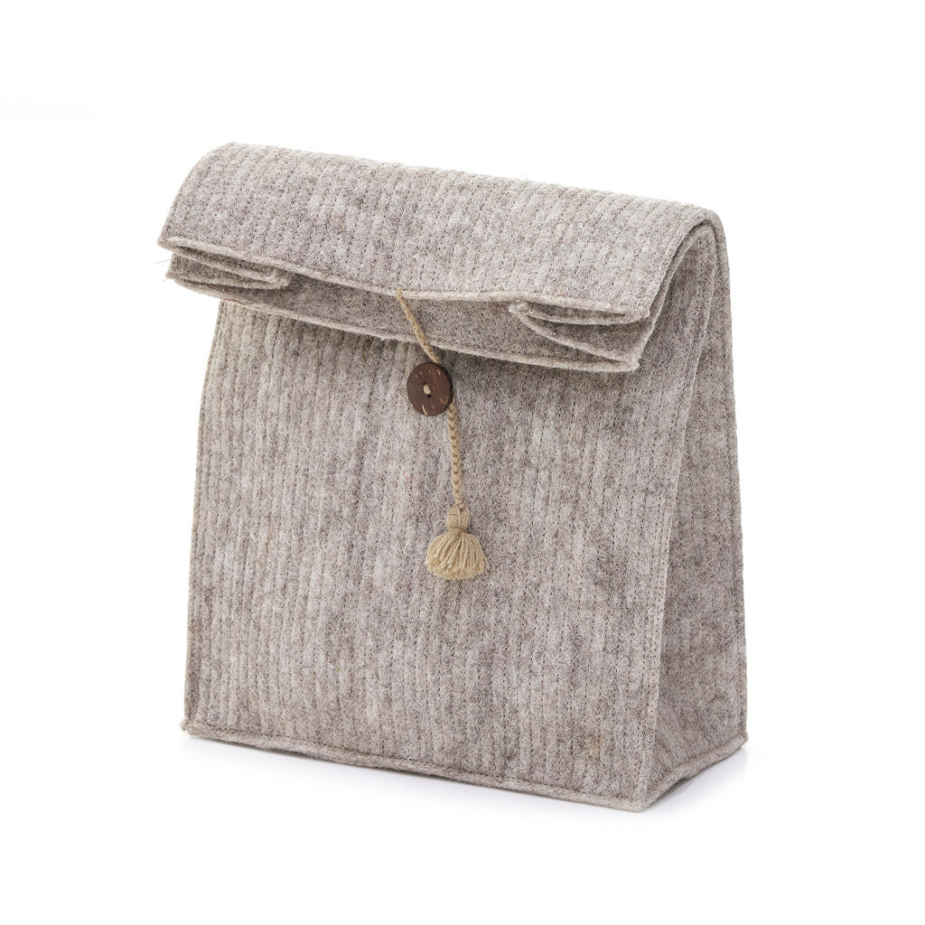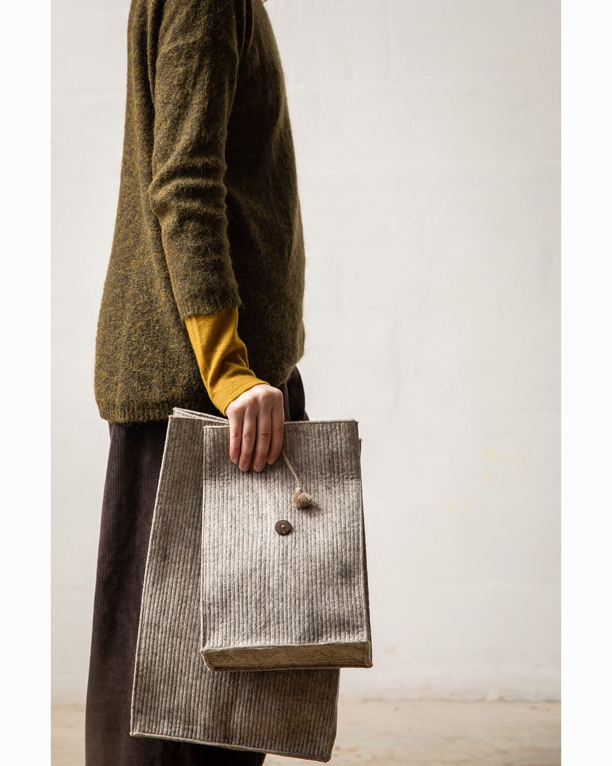 Déclinée en 2 formats, elle se distingue par ses lignes simples et sa forme singulière. Vous pourrez apprécier le travail du feutre piqué, réalisé à la main au Népal, qui lui donne tout son style ainsi qu’une belle tenue. Véritable alliée du quotidien, cette pochette en feutre peut aussi bien servir de trousse de toilette ou de maquillage, que de lunch bag ou d’accessoire de rangement. Bijoux, matériel créatif, affaires de bébé... Elle servira d'écrin feutré à toutes les petites choses du quotidien, précieuses ou non, ayant besoin d'être protégées.