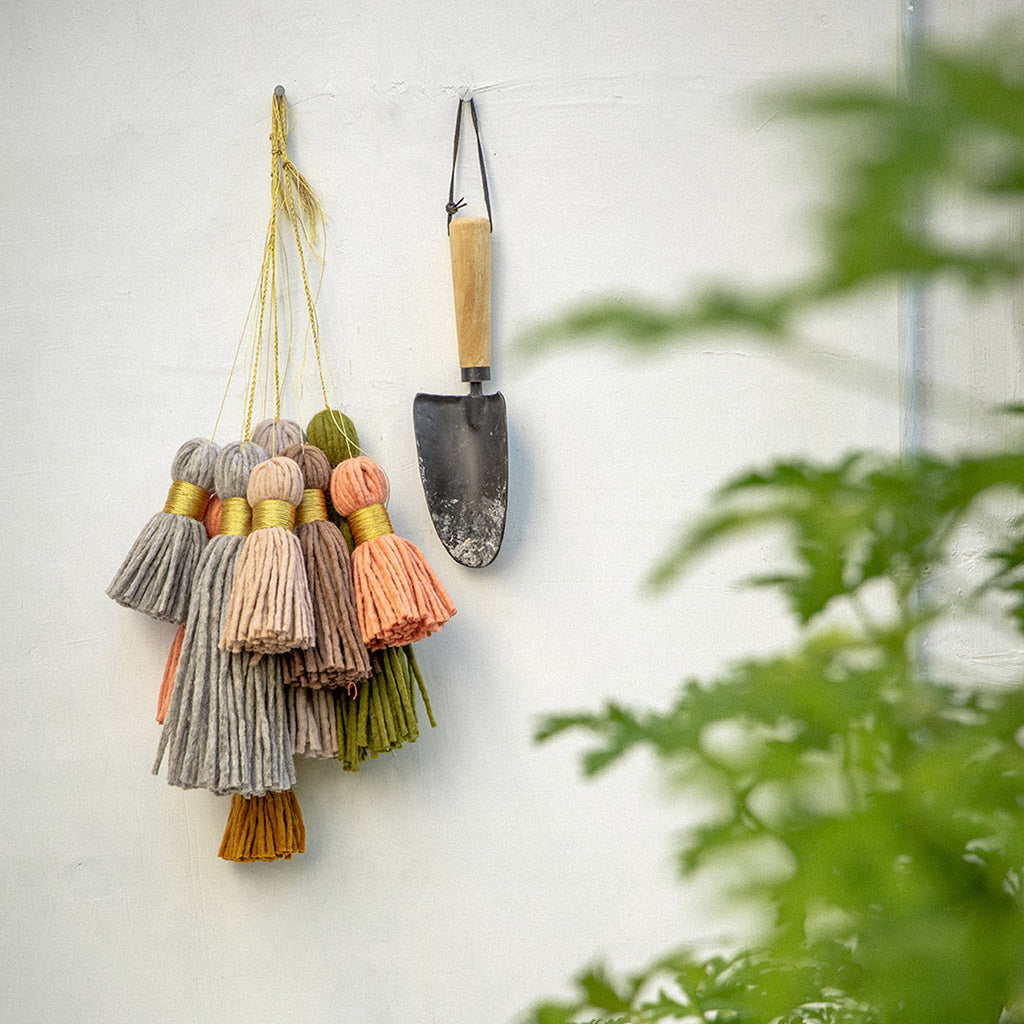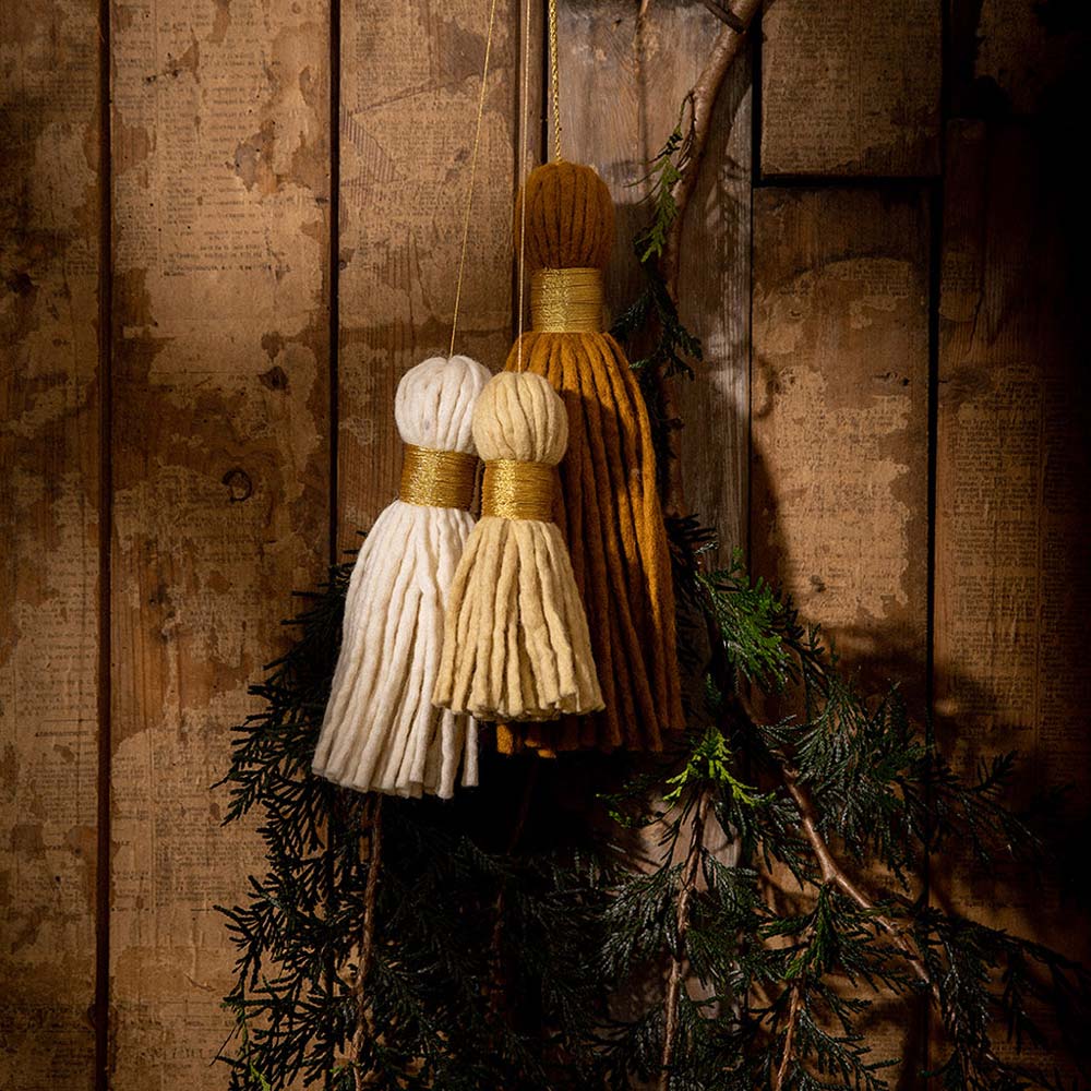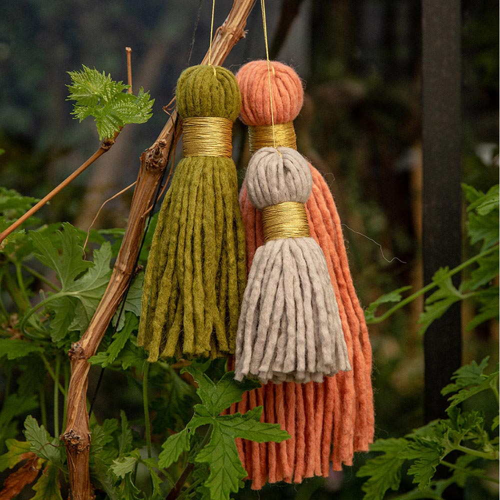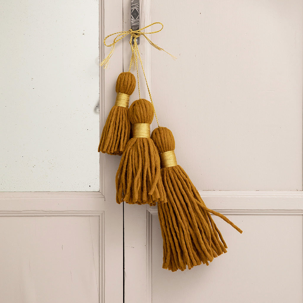 Pampille en feutre de laine douce, lien et attache en fil métallisé doré.