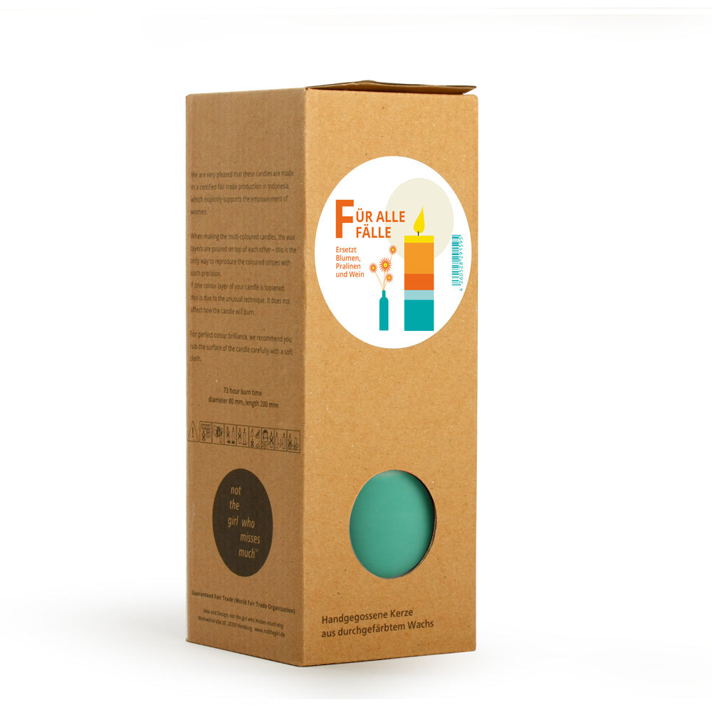 Minimalistes et aux couleurs éclatantes, nous avons mis en place dans nos bougies des codes de couleur qui se rapportent à différents aspects de la vie. Chaque bougie devient ainsi un message et un cadeau qui transmet des félicitations et des vœux. Chez nous, chaque thème a sa bougie et chaque bougie est un nouveau thème. Les bougies sont fabriquées à la main à partir de cire végétale de couleur unie.