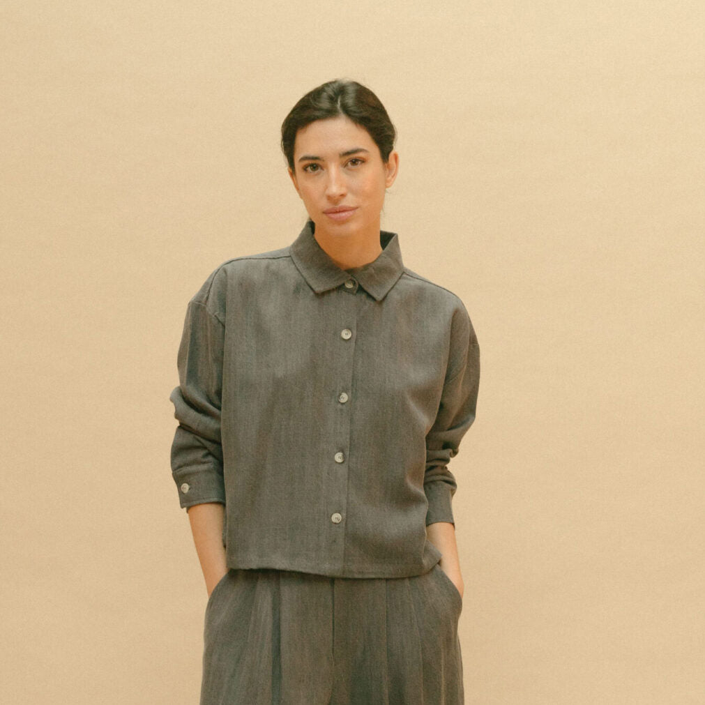 Dans un beau twill denim Tencell antracite, très souple et plombant.