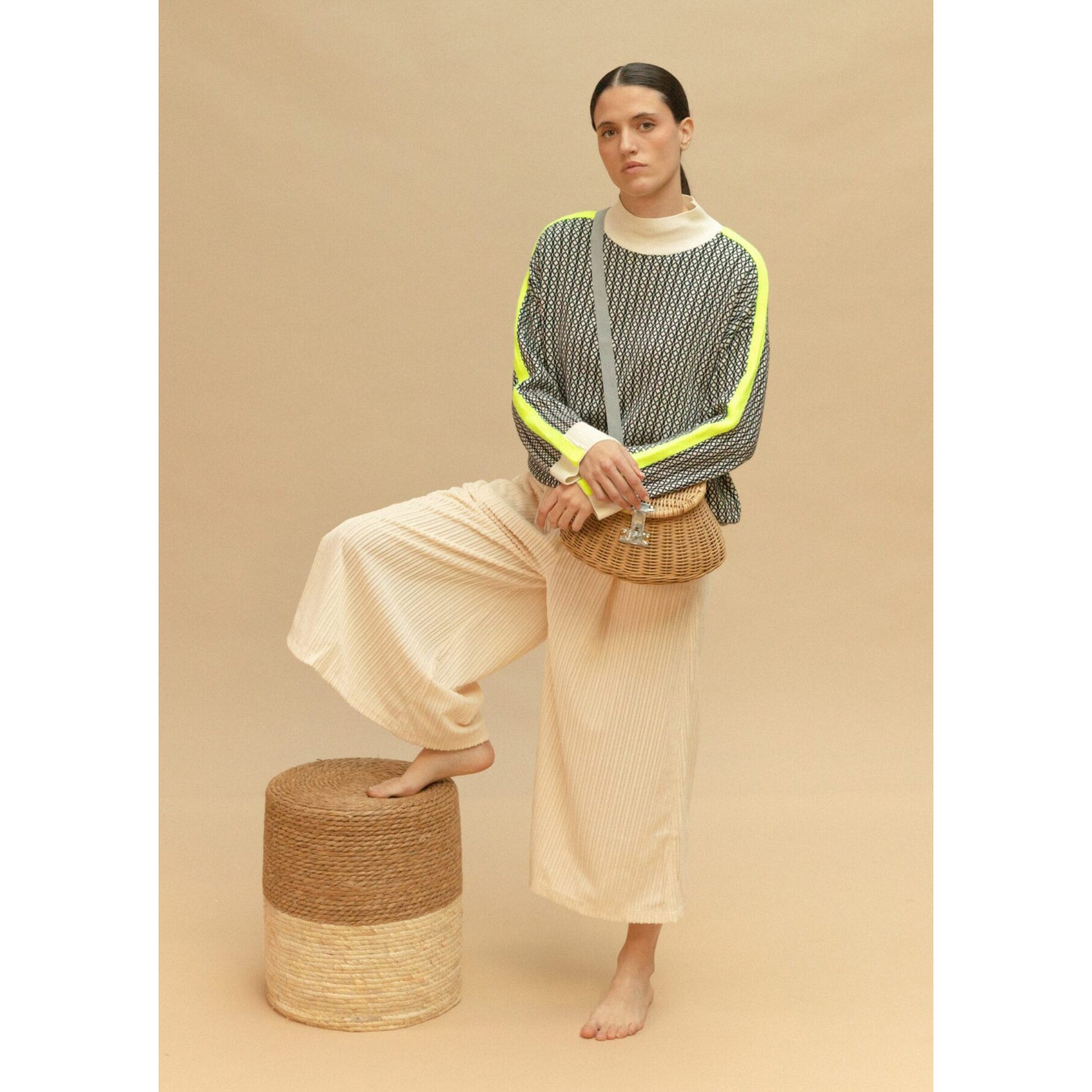 Bande jaune fluo appliquée sur les épaules et le dessus des manches.