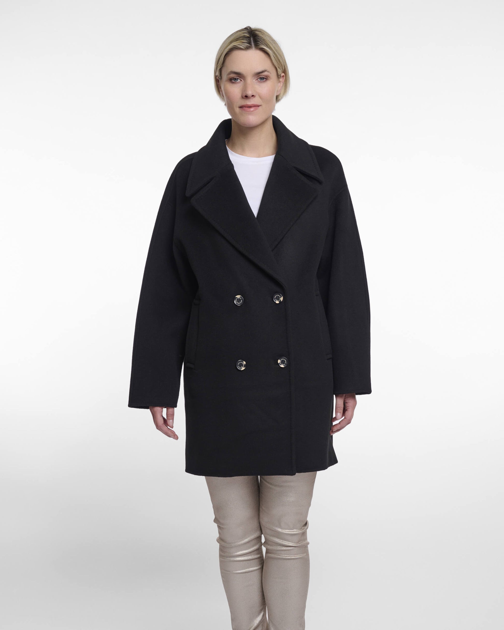 Manteau oversize esprit caban, en pure laine double face, chaud et léger.